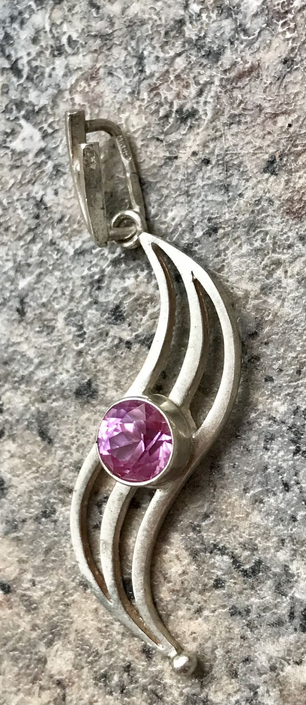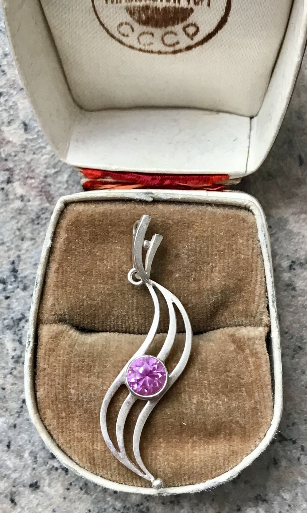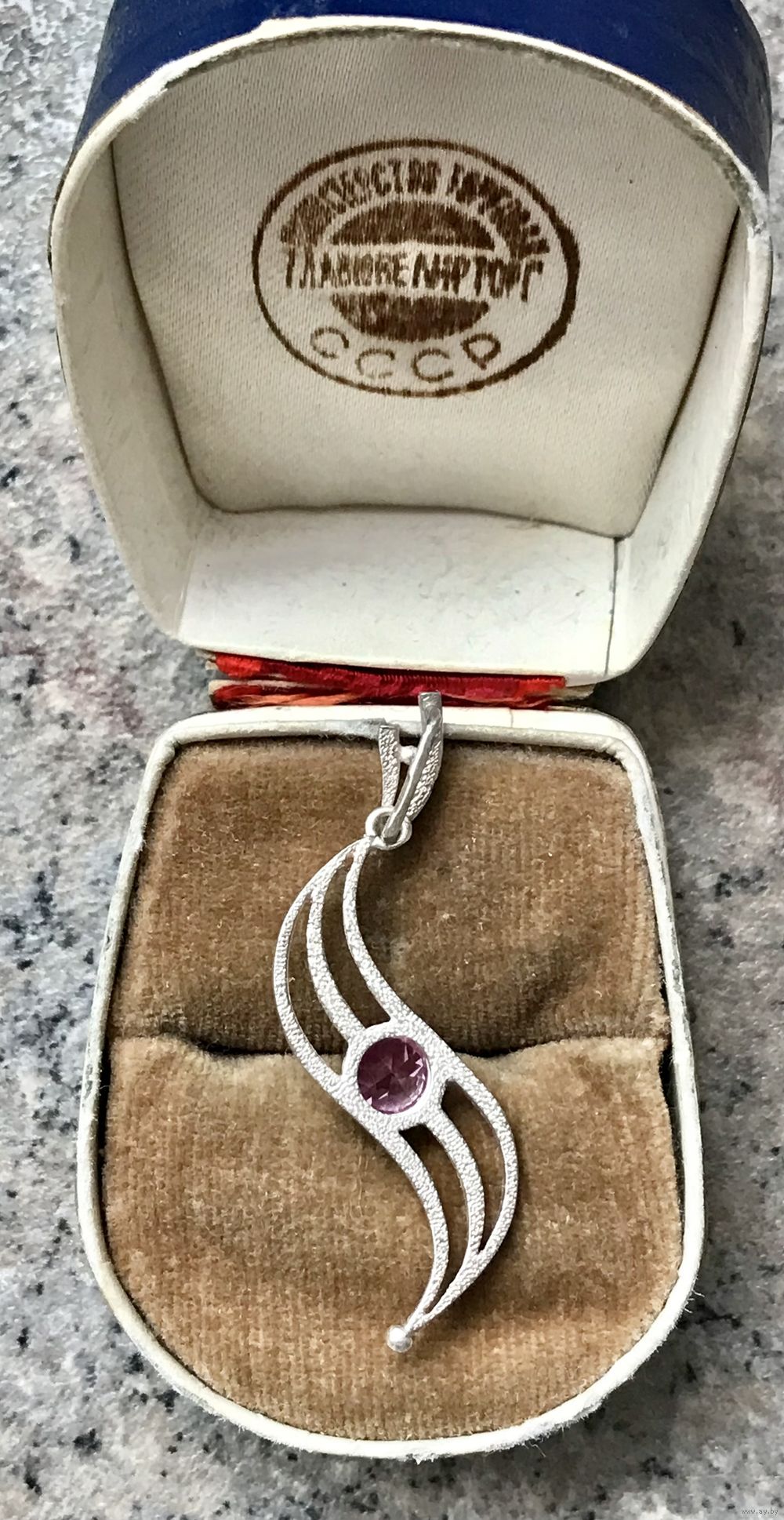 Винтажный кулон из серебра 925пр.(звезда) и вставкой из синтетического корунда. Сделан на ПО «Западкварцсамоцветы» Министерства геологии СССР, п.г.т. Володарск-Волынский в 1991г. (именник :1КВВ). Высота кулона с петлей 4,2см., диаметр вставки 0,6см. Вес 2,22гр. Состояние хорошее.