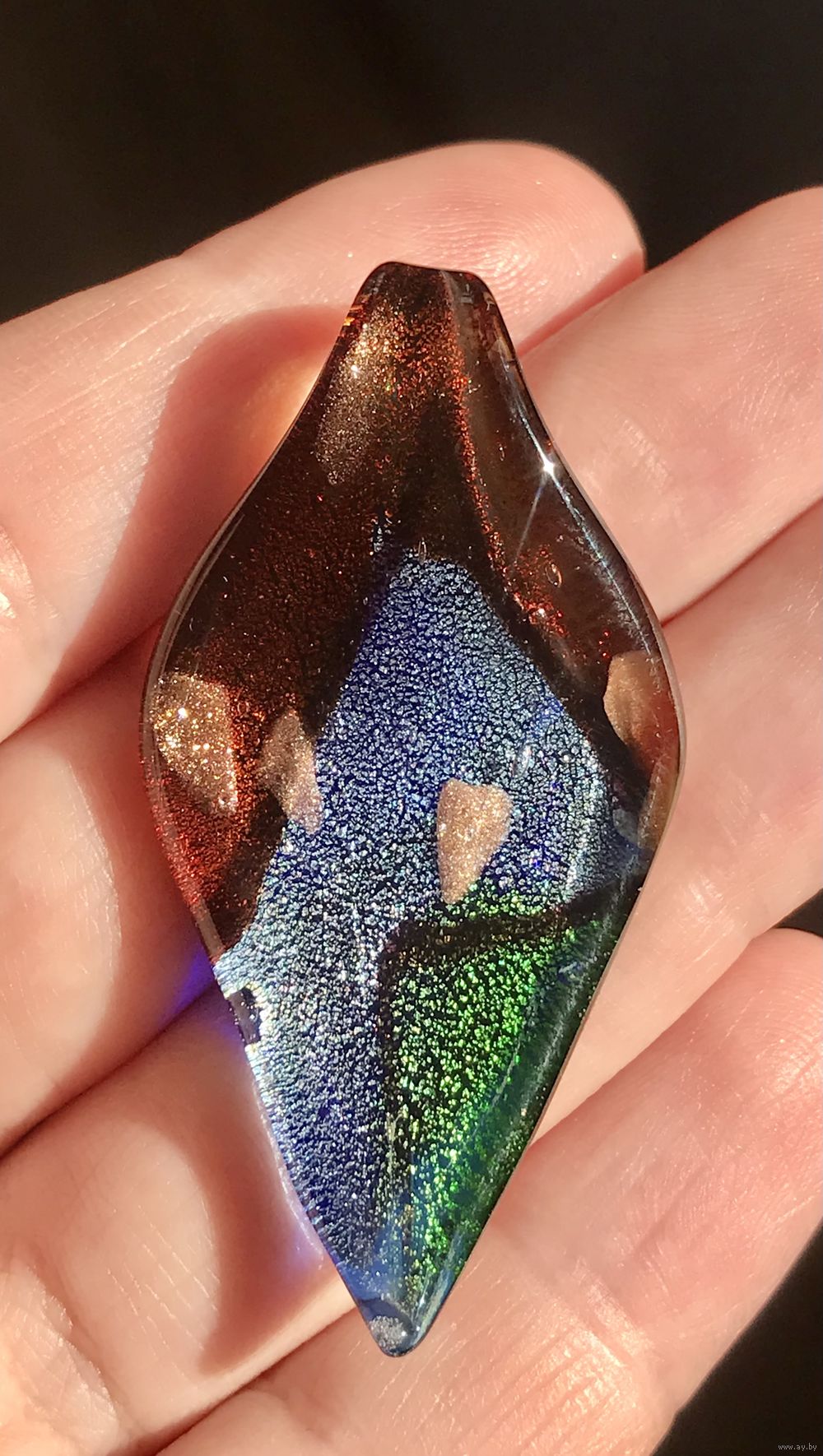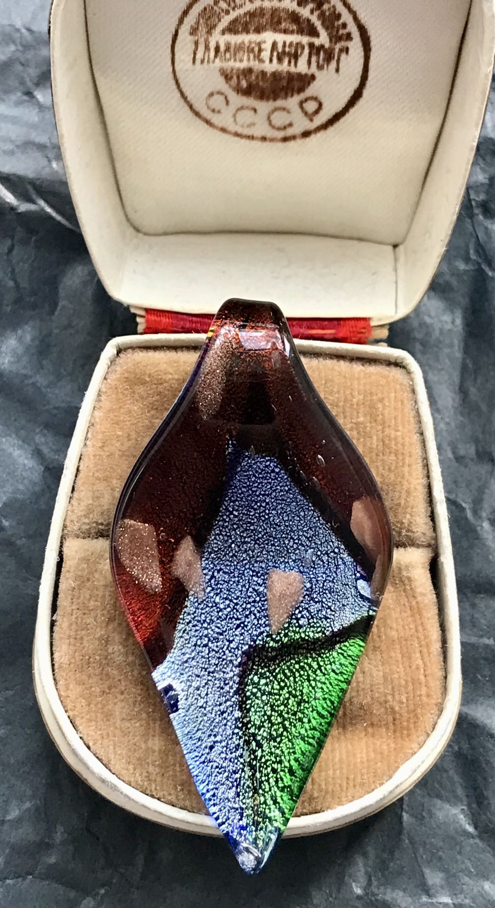 Кулон из художественного стекла, размер 5,2х2,7см. Состояние хорошее.
