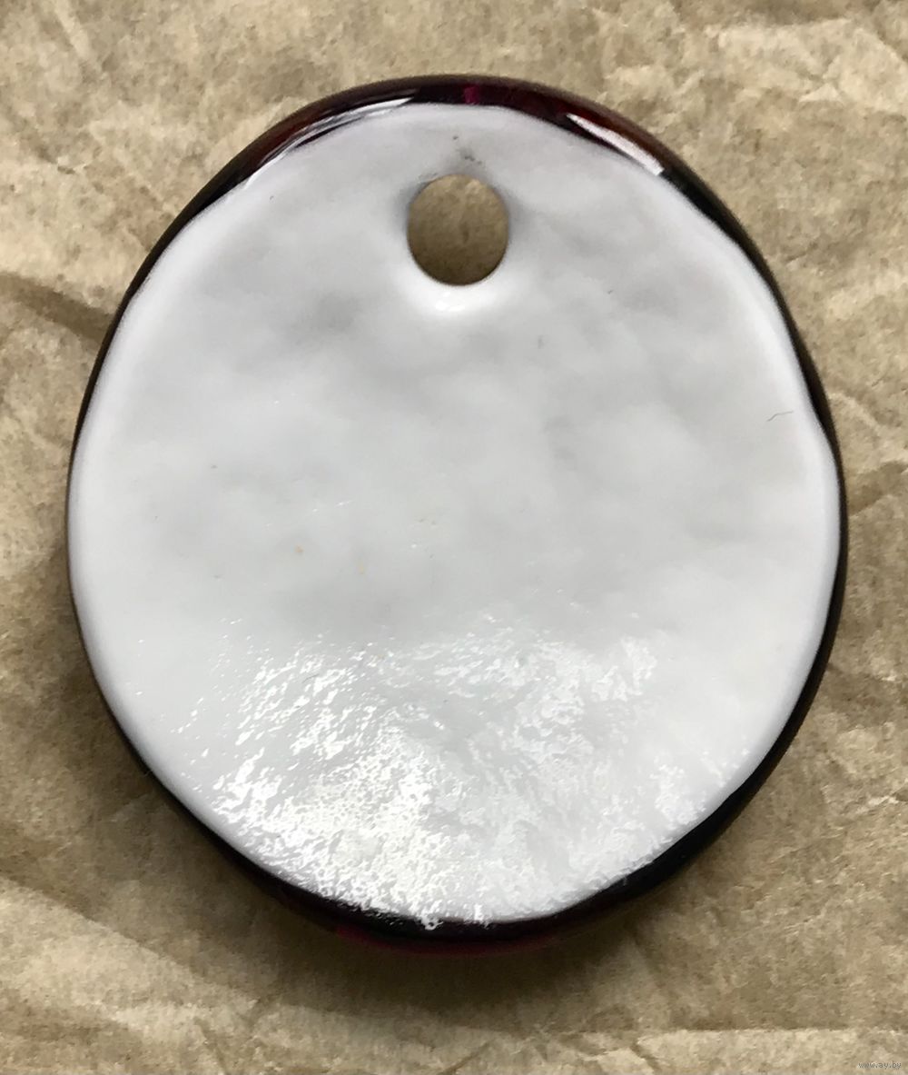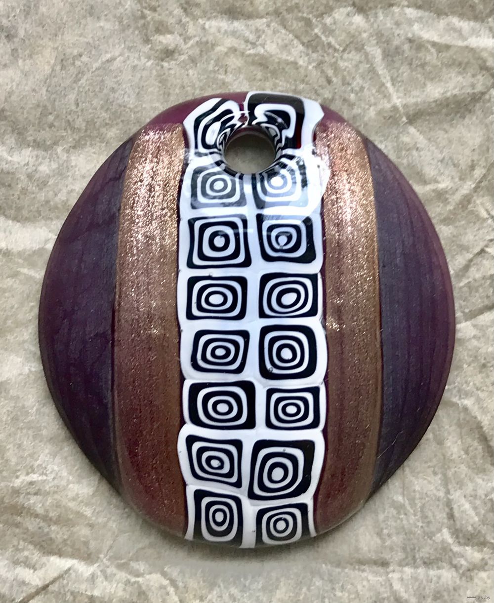 Крупный кулон из художественного стекла, ручная работа. Высота 5,6см., ширина 5,2см. Диаметр отверстия для цепочки или шнурка 0,5см. Тяжёленький. Состояние хорошее.