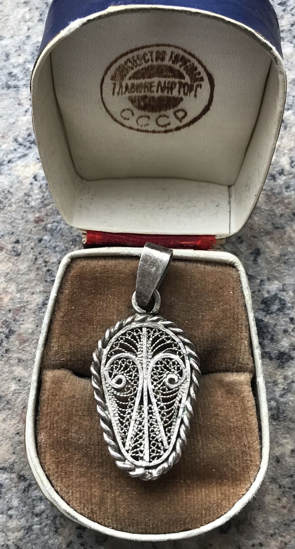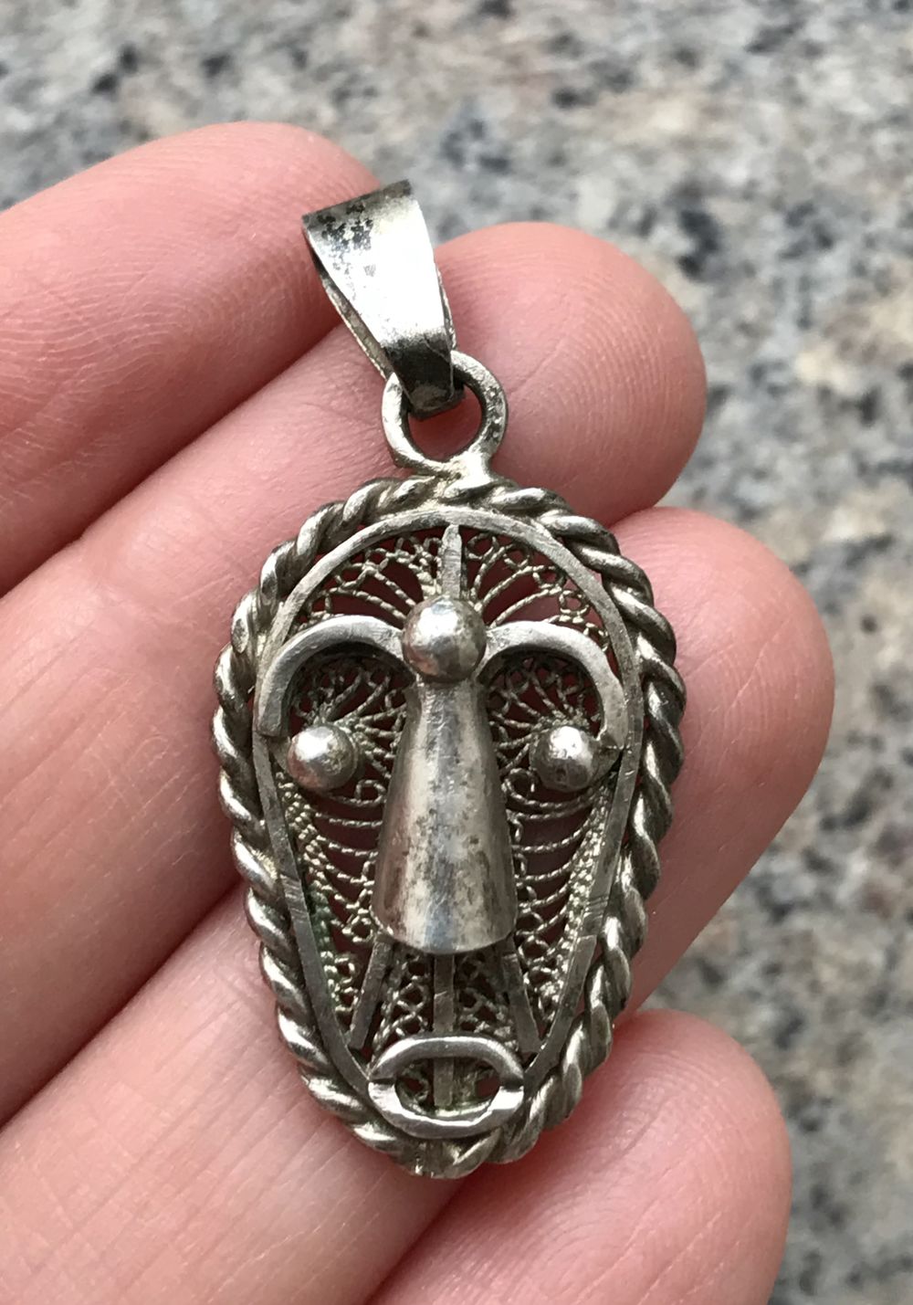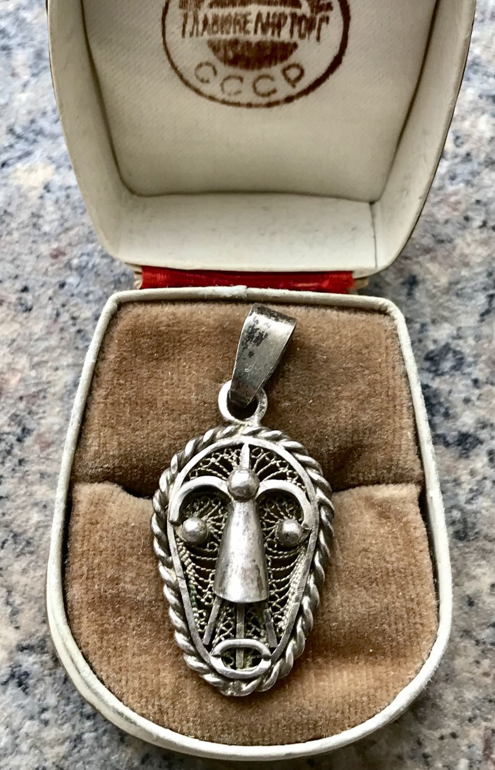 Небольшой кулон унисекс из металла с серебрением. Высота с петлей 4см., размер подвески 3х1,8см. Состояние хорошее.
