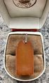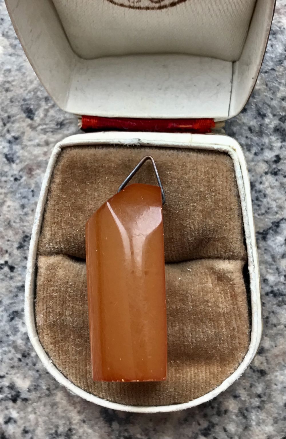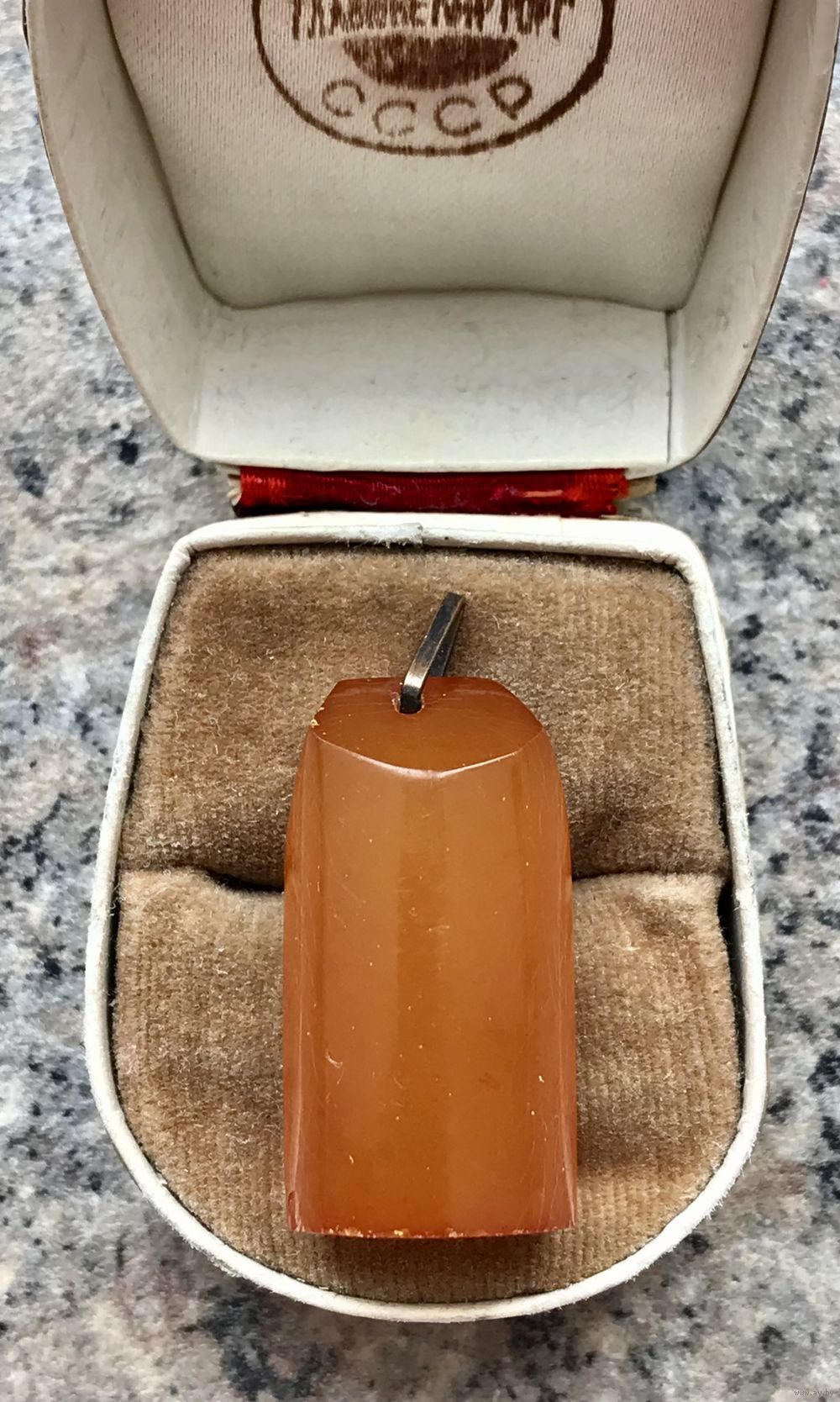 Винтажный кулон из янтаря (пресс). Высота с петлей 3,8см., размер янтаря 3х1,5см., толщина 1,3см. На гранях есть небольшие скольчики.