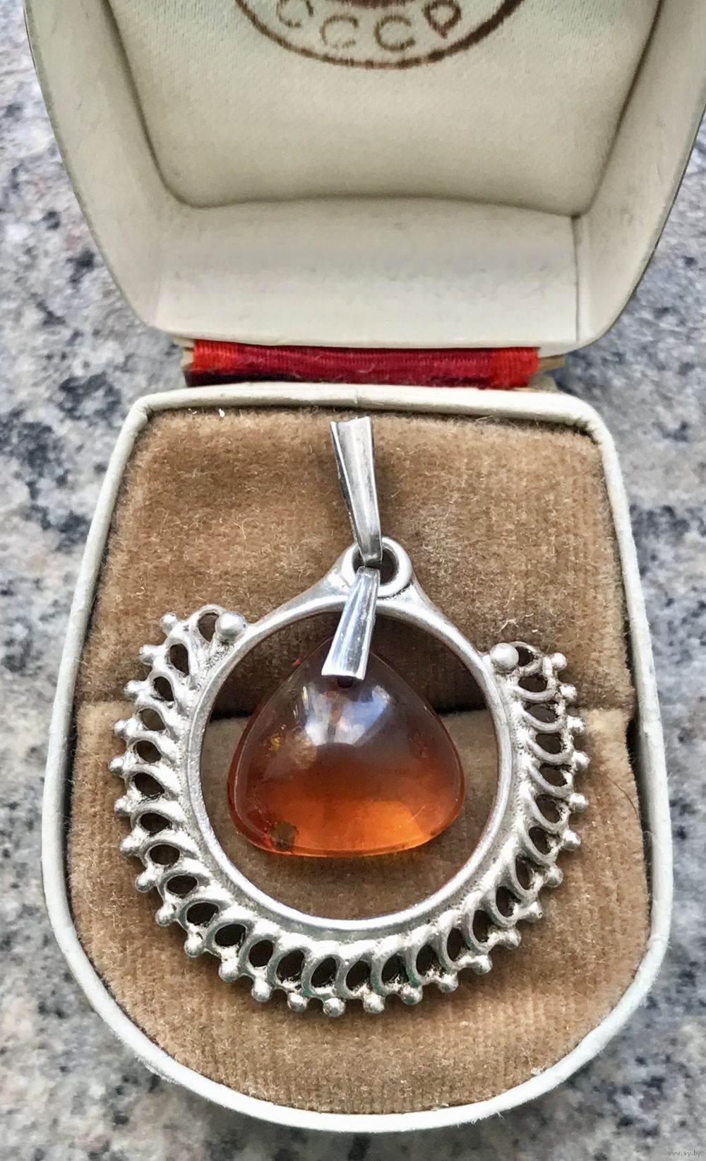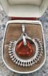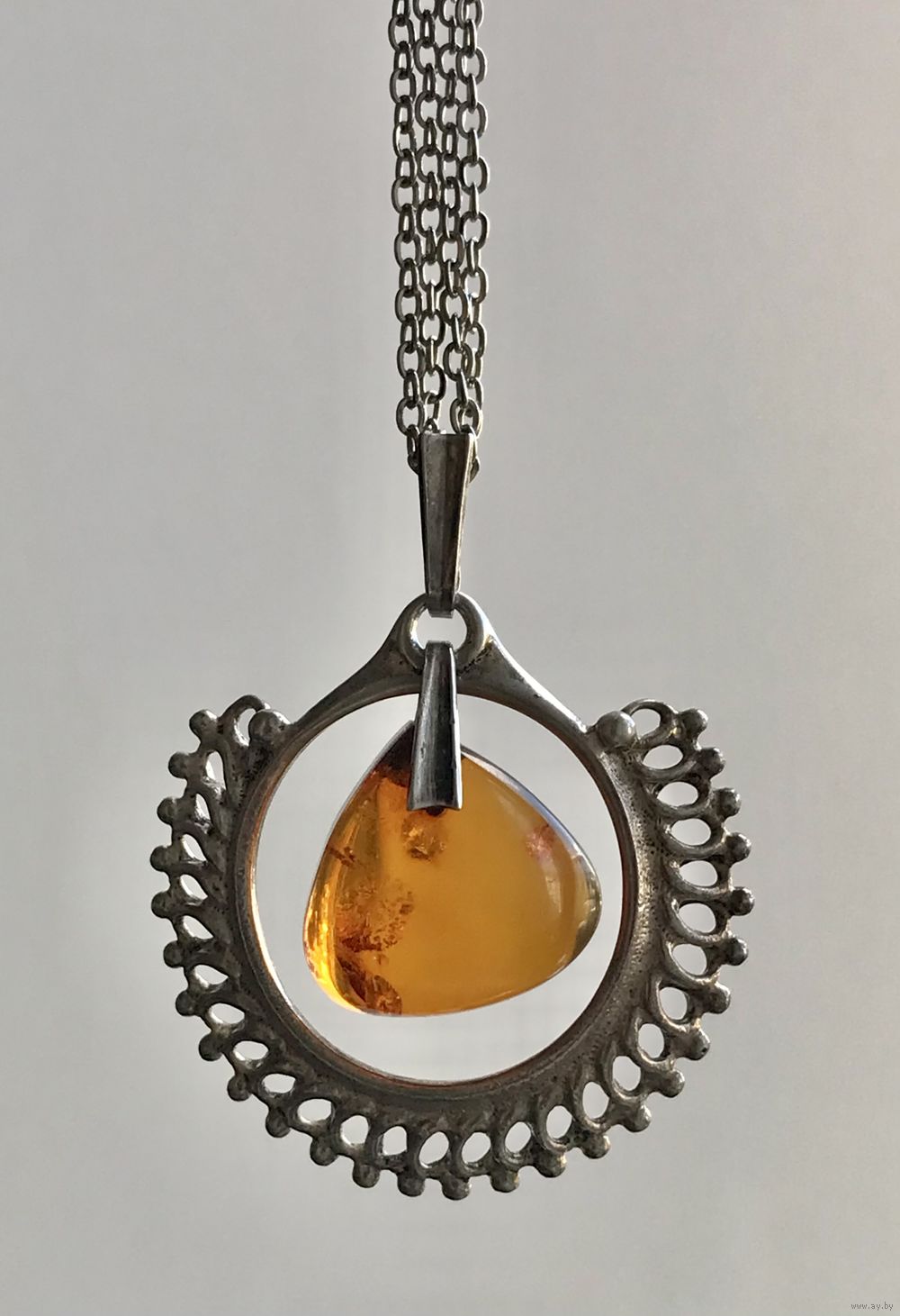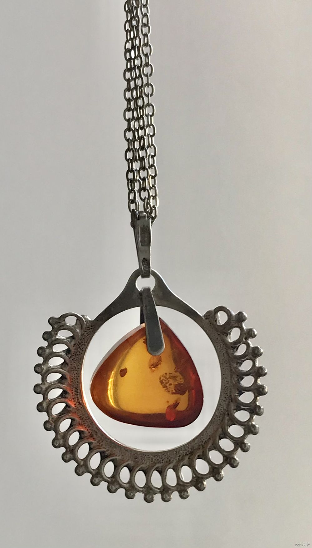 Кулон из серебра 925пр.(звезда) и вставки из янтаря. Изготовлен в Калининграде. Высота кулона с петлей 3,8см., размер янтарной вставки 1,4х1,5см. Элемент с янтарем подвижен. Состояние хорошее.