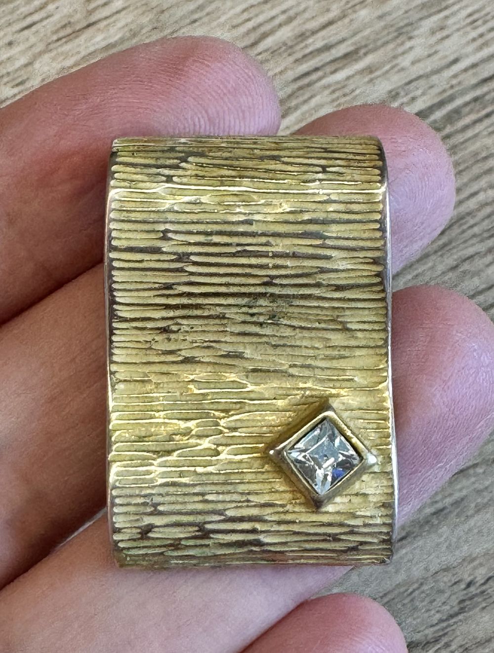 Кулон из металла золотого тона, на лицевой стороне вставка из стекла. На металле местами имеются небольшие потертости. Размер 3,4х2,2см.