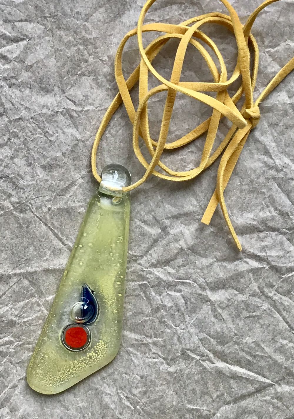 Крупный кулон из художественного стекла. Высота 8,5см., длина шнура 90см. Состояние хорошее.