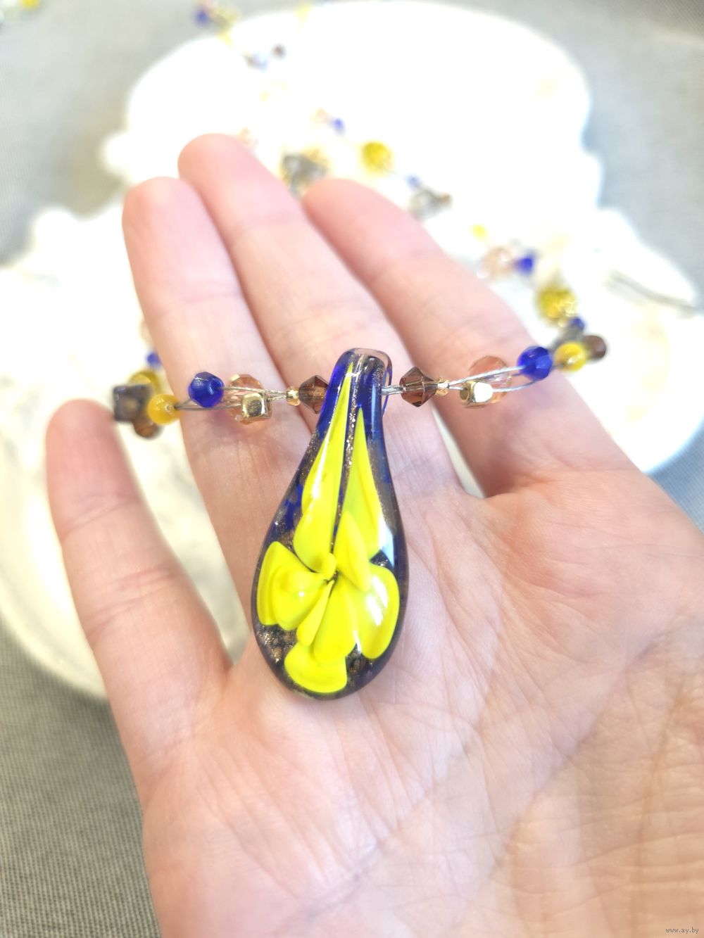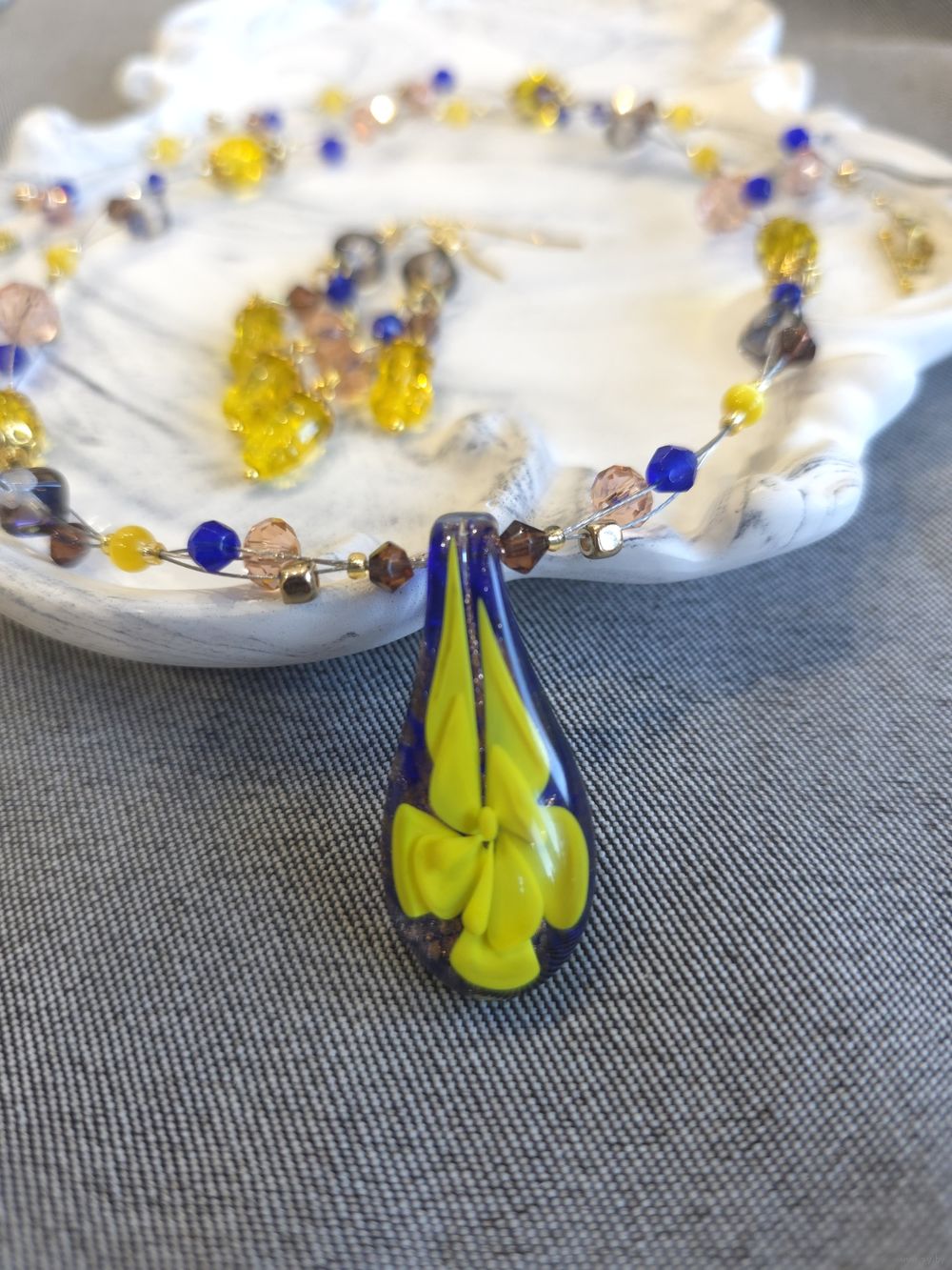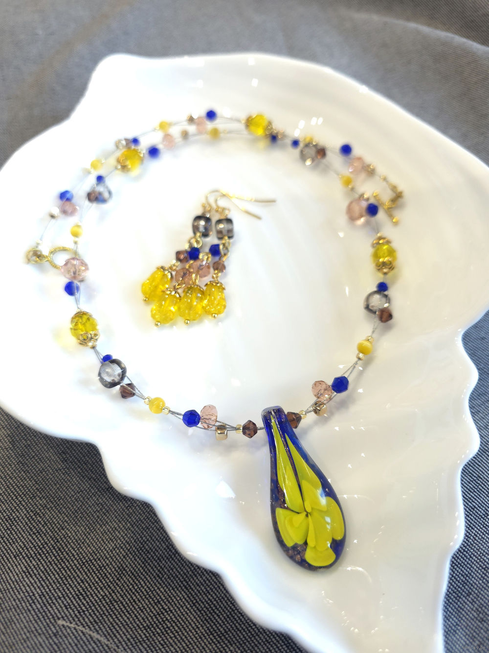 Шикарные бусы из кулона муранского стекла (Murano) и чешских стеклянных бусин.