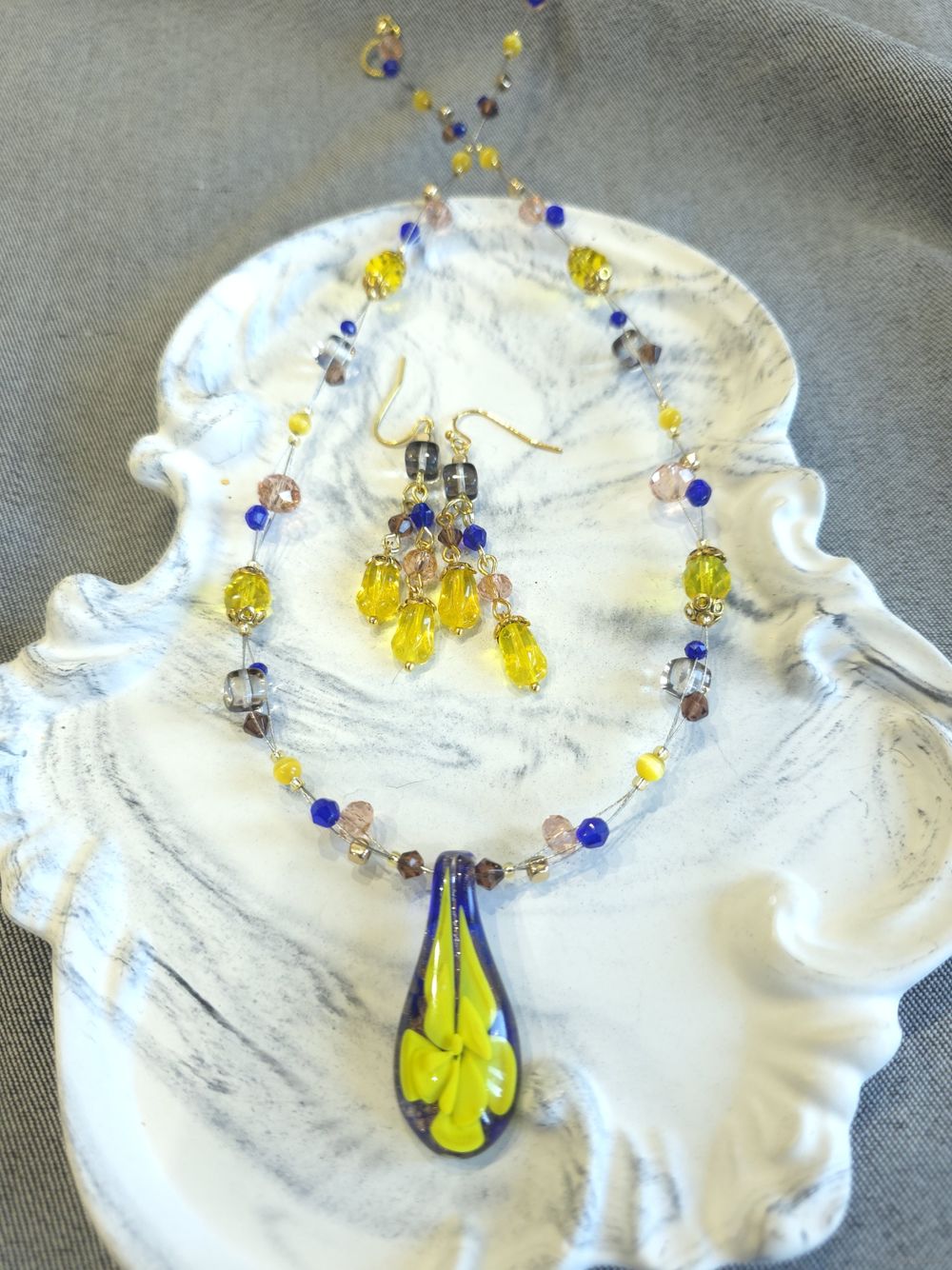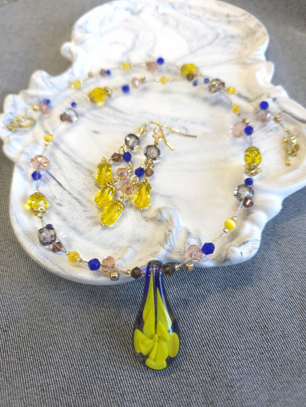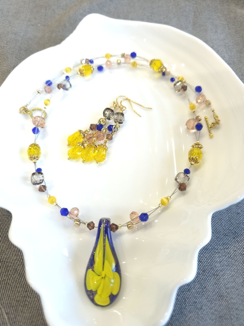 Шикарные бусы из кулона муранского стекла (Murano) и чешских стеклянных бусин.