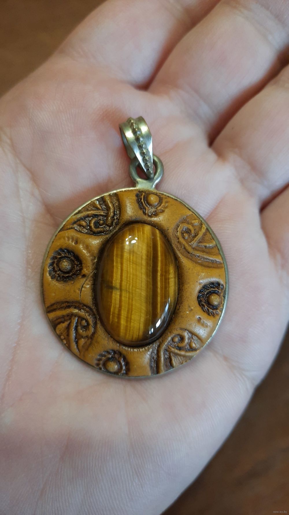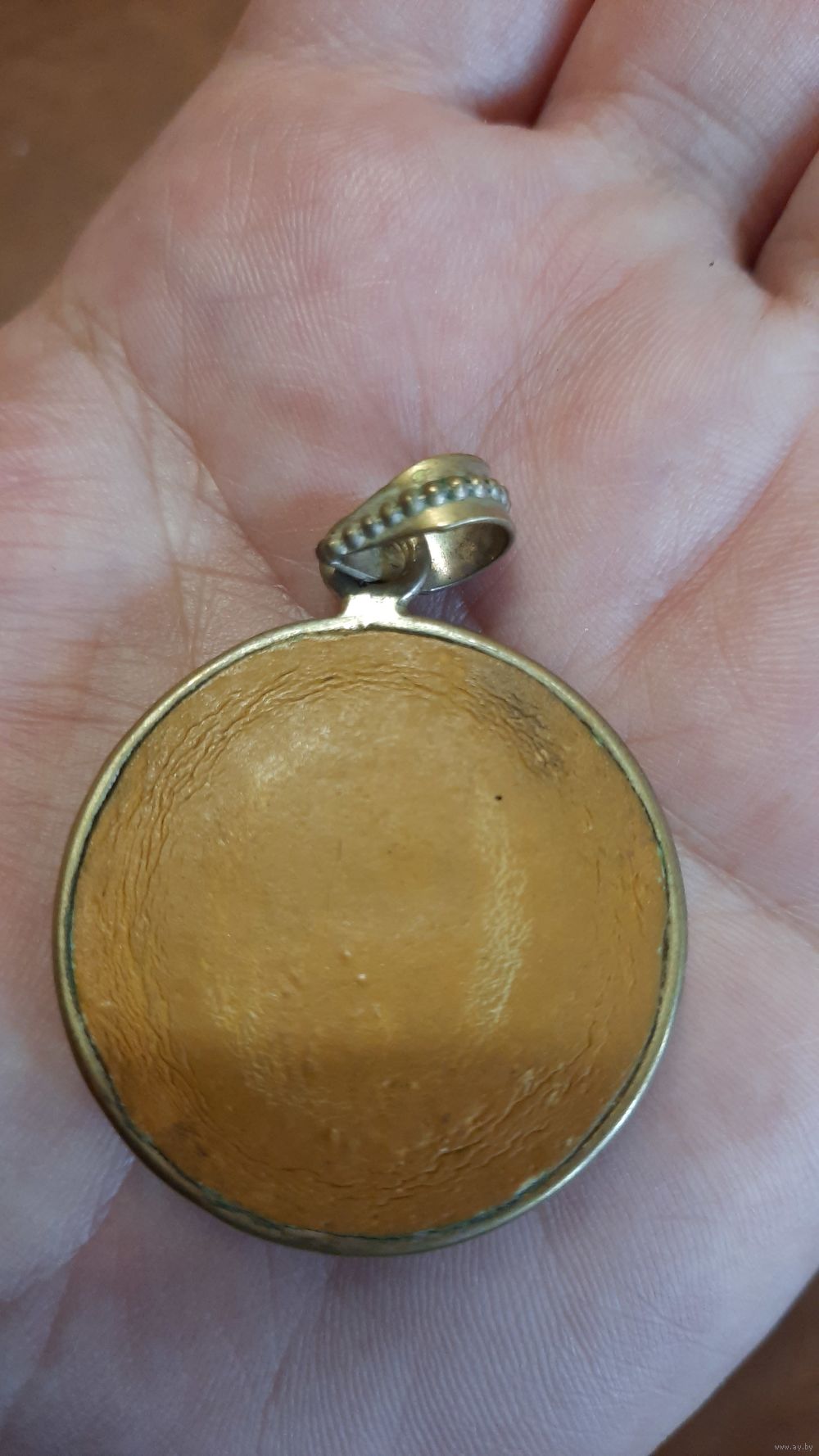 Металл скорее латунь, какая-то глина с вставленным камнем
