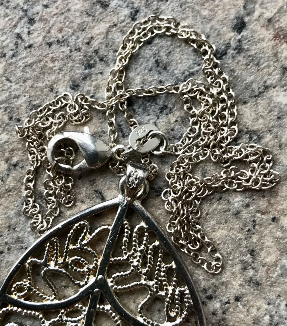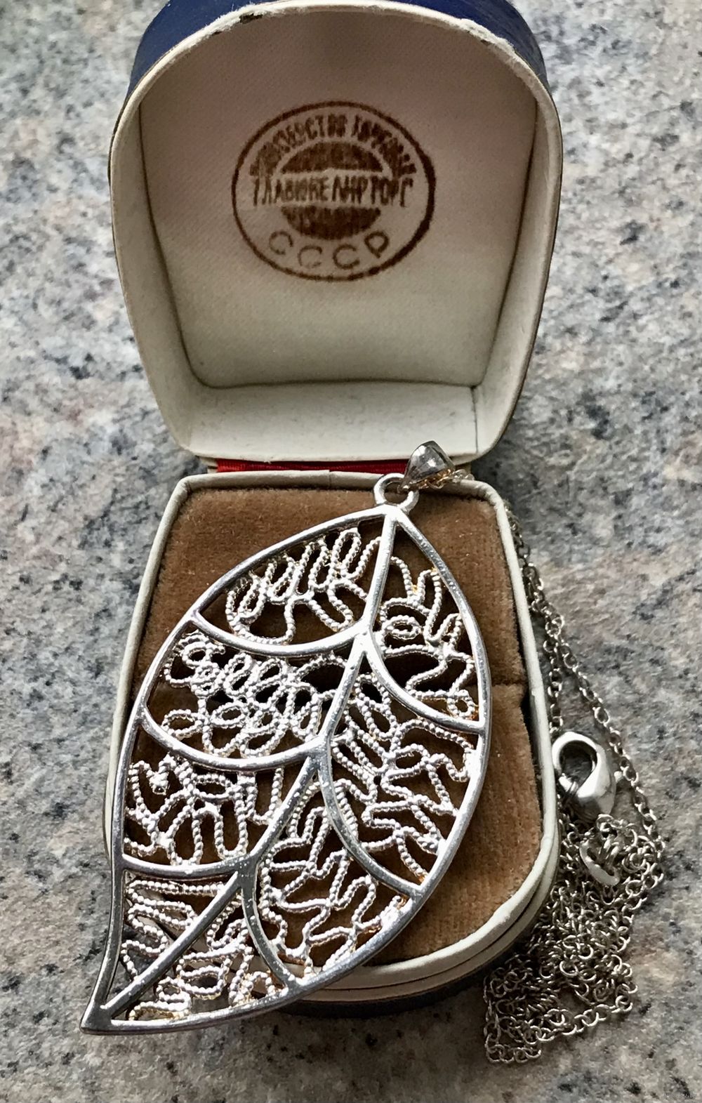 Кулон на цепочке из металла с серебряным покрытием. Размер кулона 6х3см., длина цепочки 47см. Состояние хорошее.