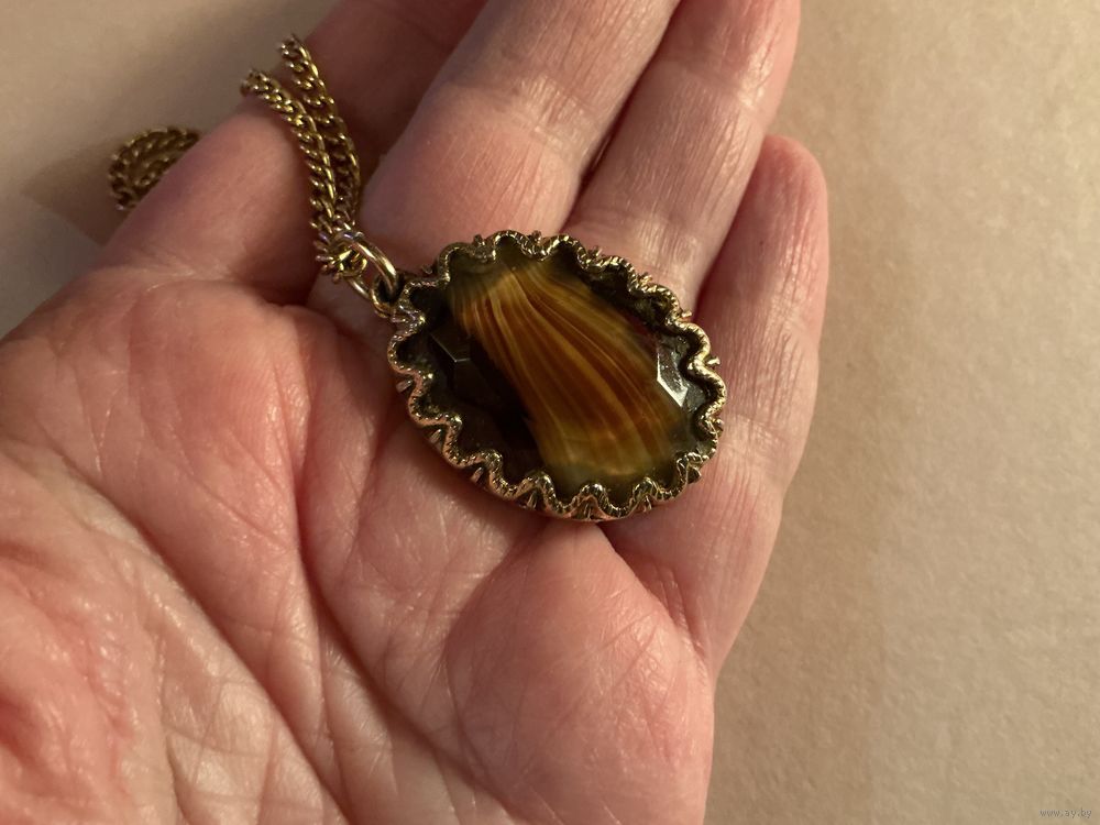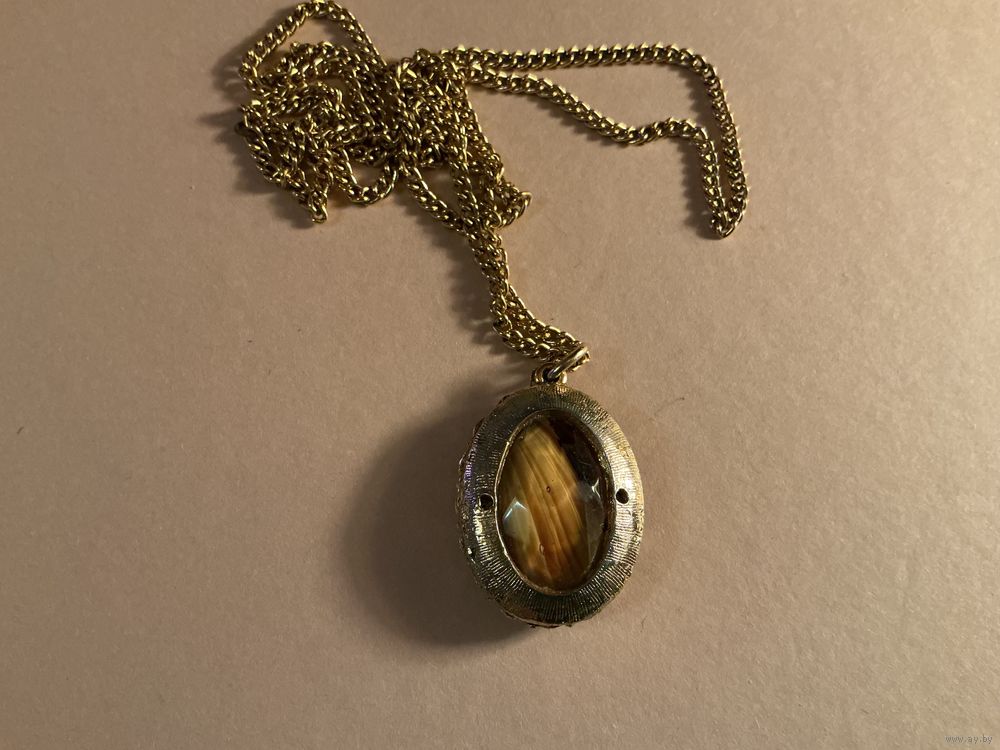 Красивый кулон , 3,5 см х 2,5 см , цепь 60 см , металл под золото , есть броши и кольцо с такой же вставкой