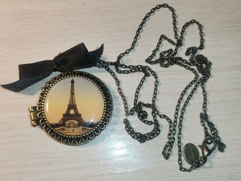 Кулон на цепочке "Эйфелева башня", длина цепочки 80 см., клеймо.