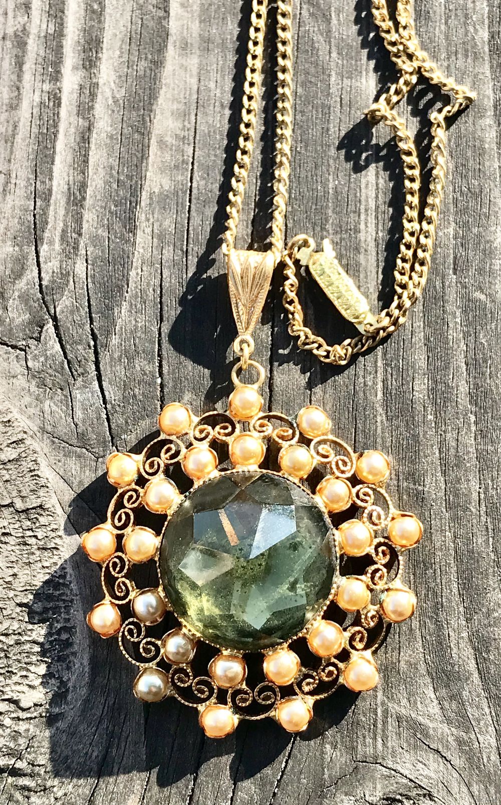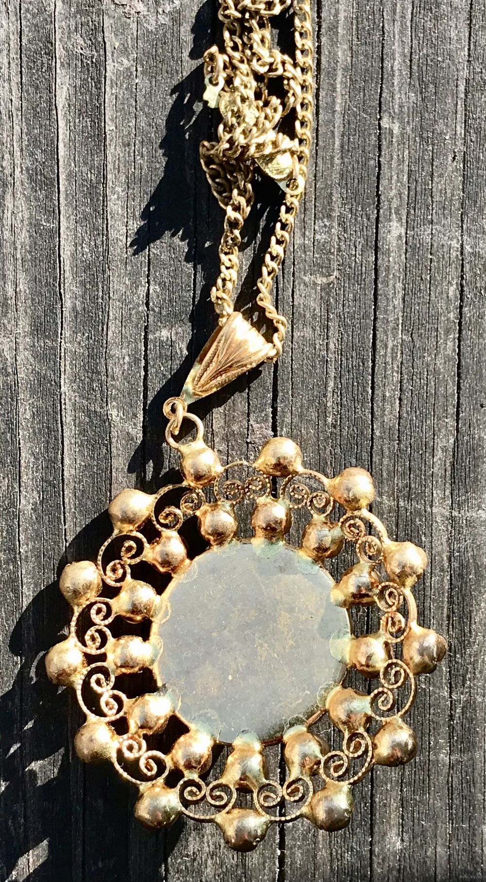 Винтажное редкое чешское украшение выполнено из латуни методом штампования под филигрань. Длина цепочки 56 см., подвеска в высоту 11 см., ширина 3,5см. Состояние хорошее.