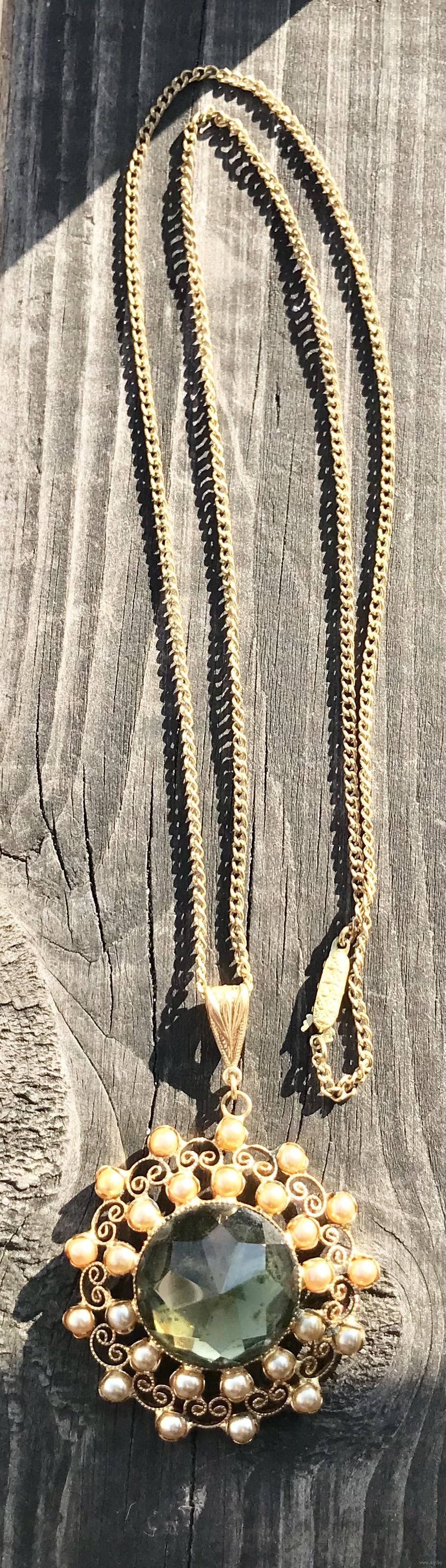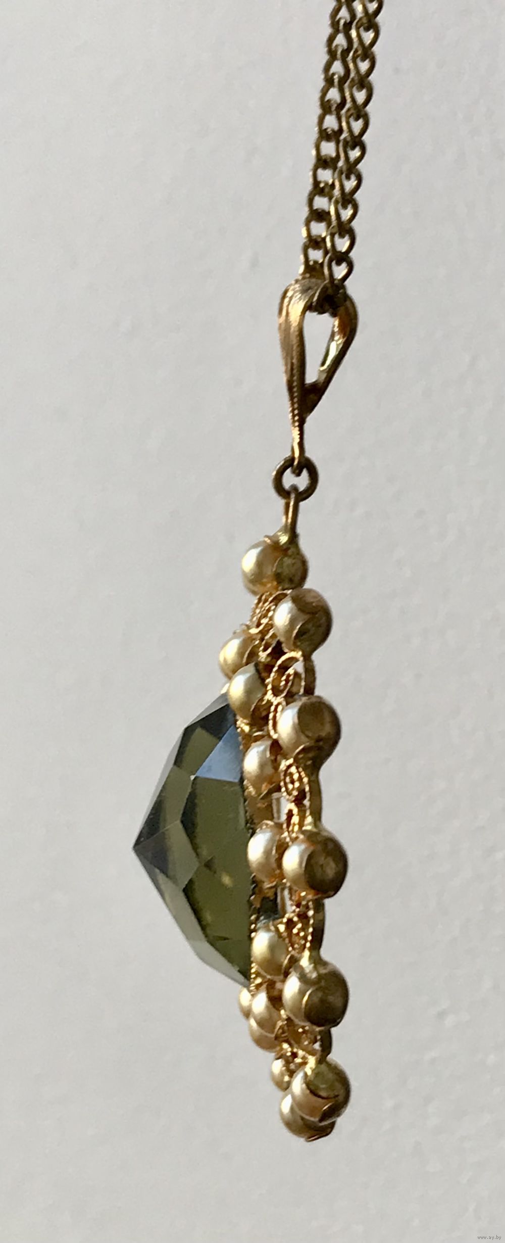 Винтажное редкое чешское украшение выполнено из латуни методом штампования под филигрань. Длина цепочки 56 см., подвеска в высоту 11 см., ширина 3,5см. Состояние хорошее.