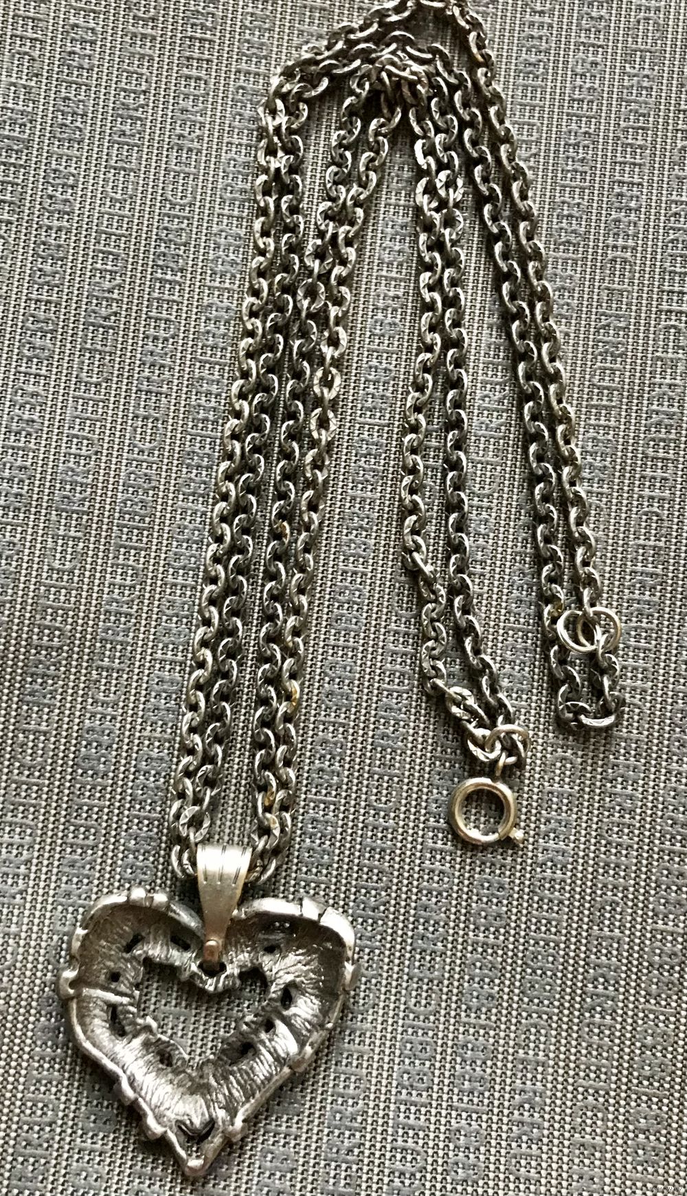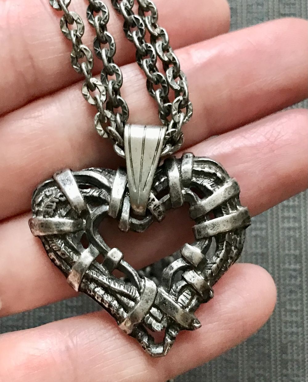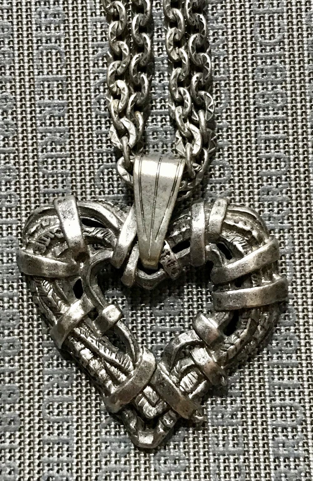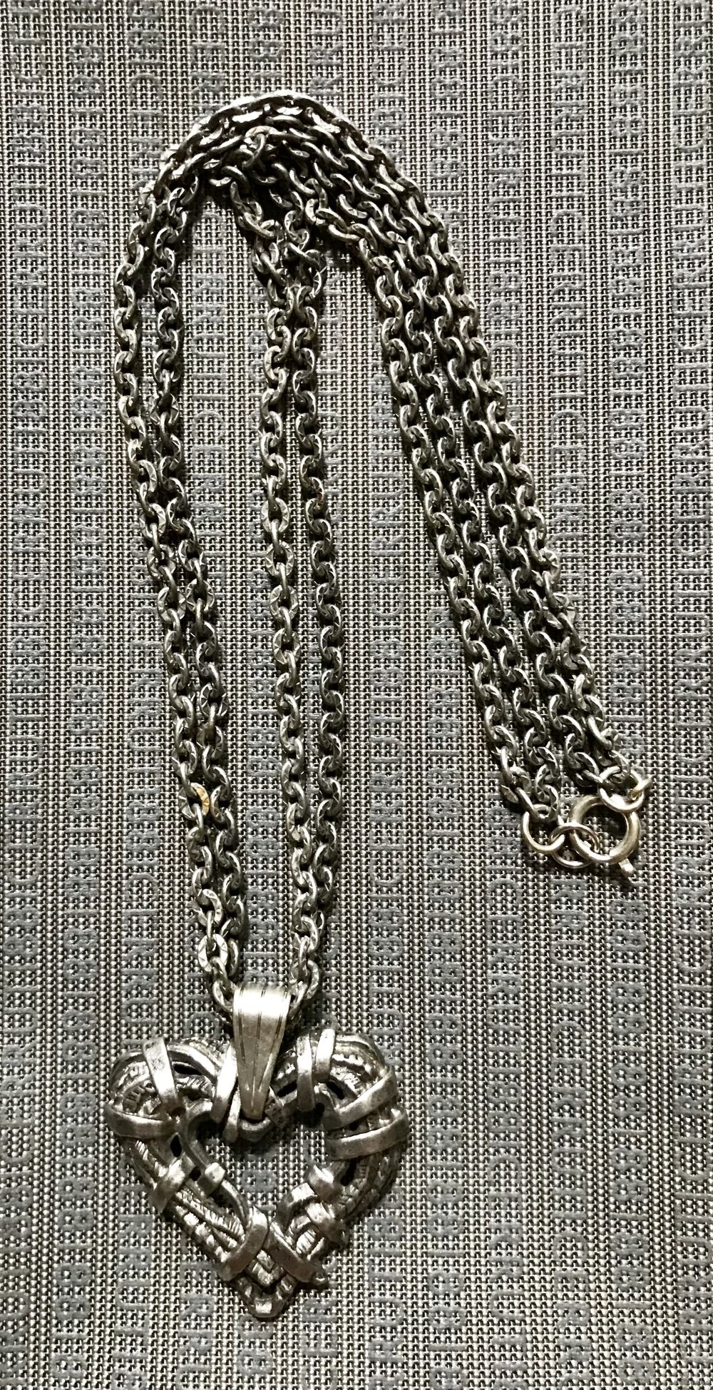 Винтажное украшение из пьютера. Длина цепочки 46см., размер кулона 3,8х3,5см. Состояние хорошее.