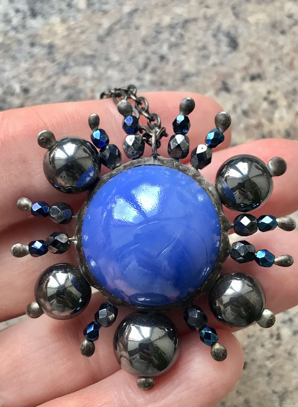 Дизайнерский кулон на цепочке. Металл, стекло. Диаметр кулона 5см., длина цепочки 70см+4см.доп.часть. Состояние хорошее.