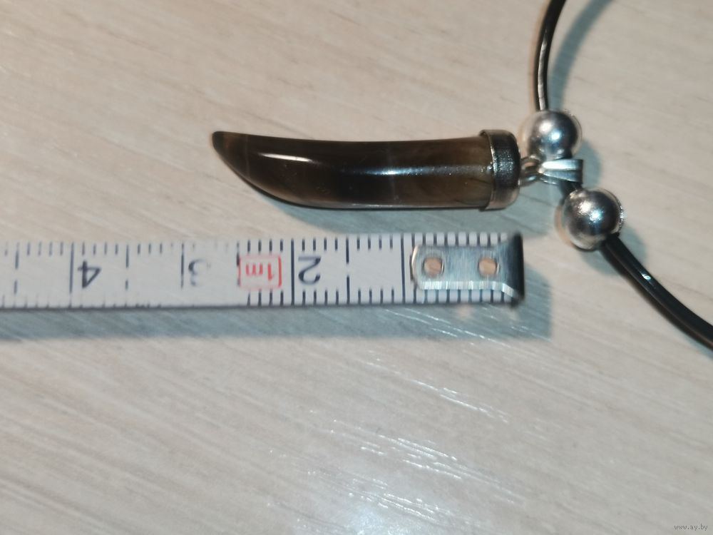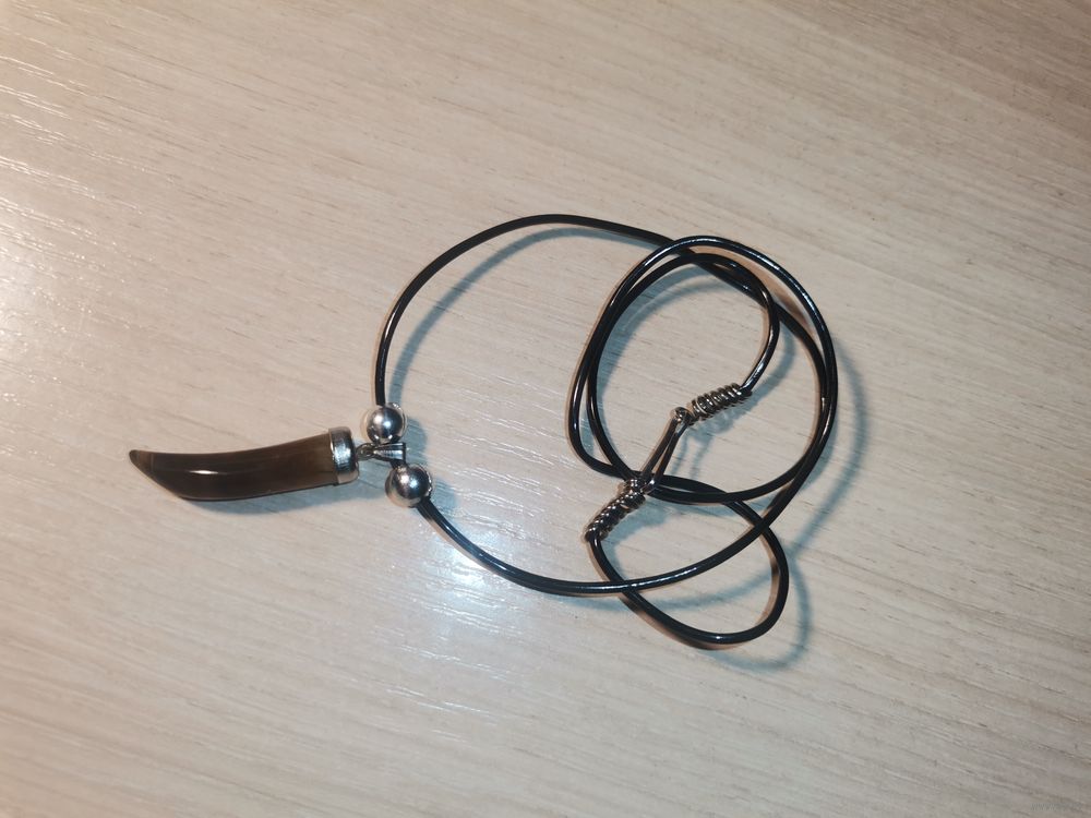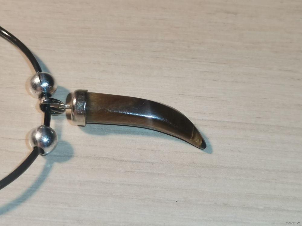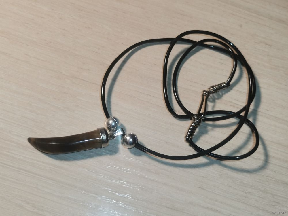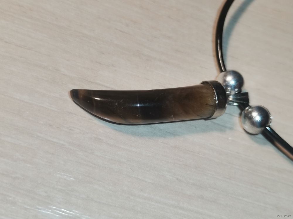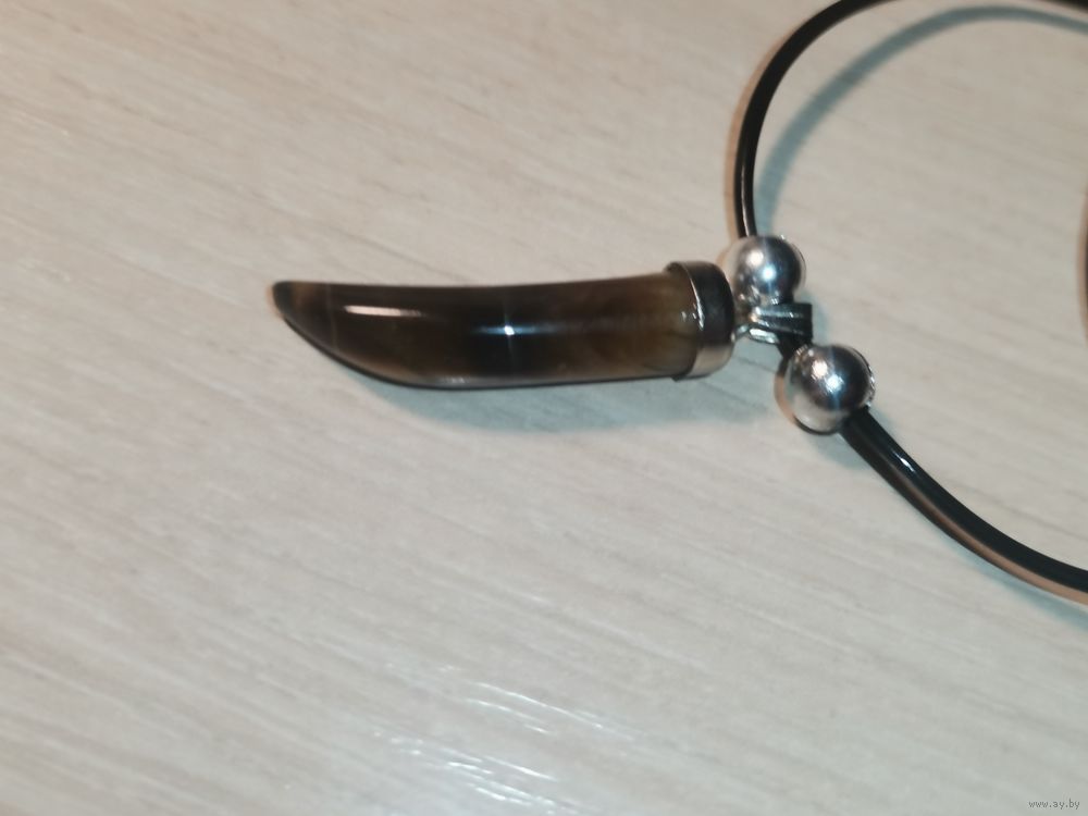 Кулон-подвеска из тигрового глаза в форма клыка, длина нити 44 см.