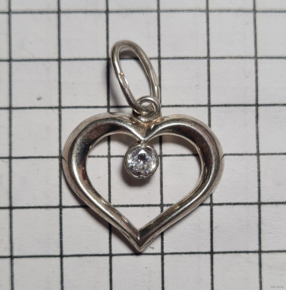 Кулон привеска Сердце серебро 925 лот #21, С РУБЛЯ! МНОГО ЛОТОВ С РУБЛЯ БЕЗ МЦ!