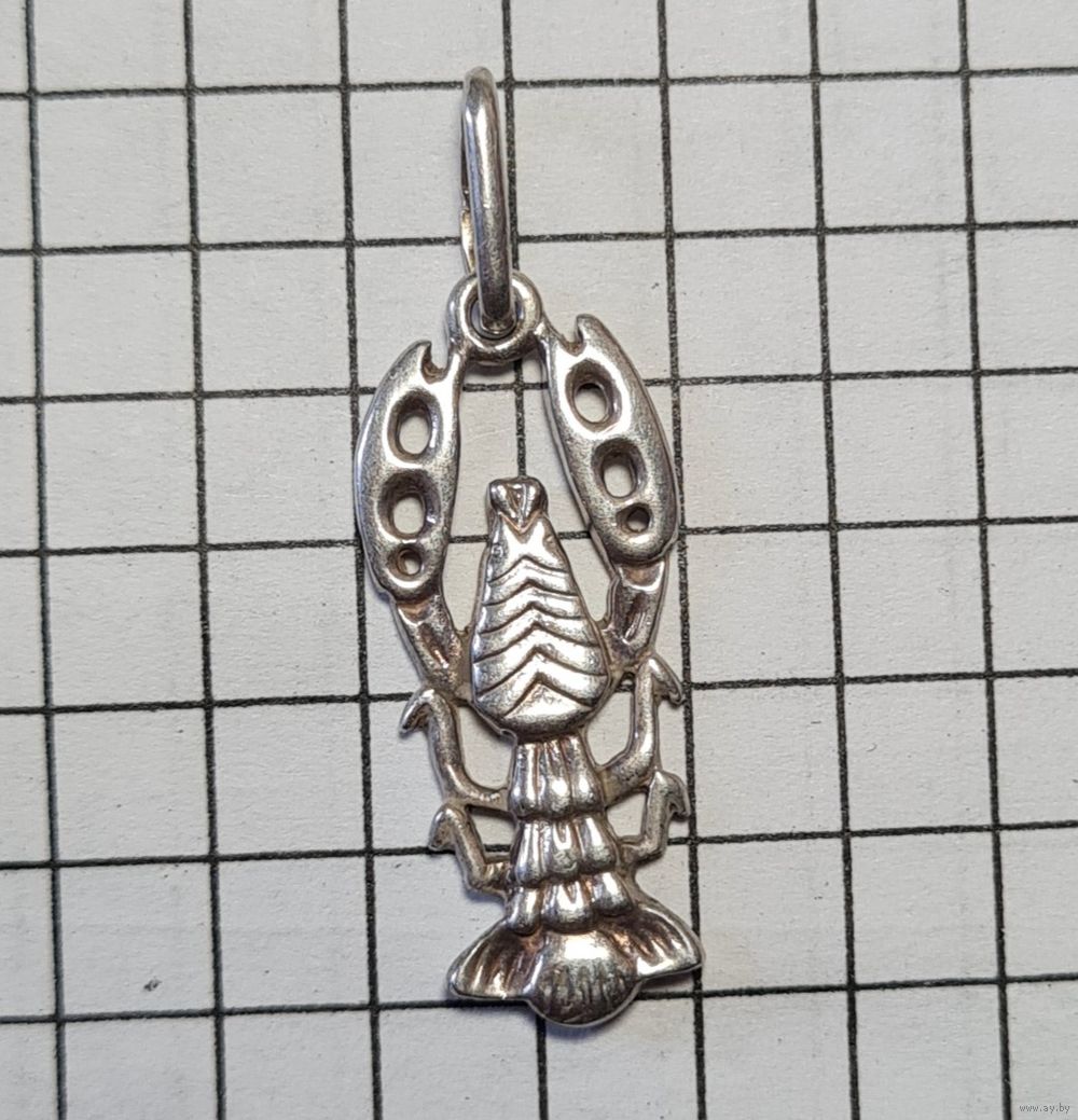 Кулон привеска знак зодиака Рак серебро 925 СССР ЗВЕЗДА лот#1, С РУБЛЯ! МНОГО ЛОТОВ С РУБЛЯ БЕЗ МЦ!