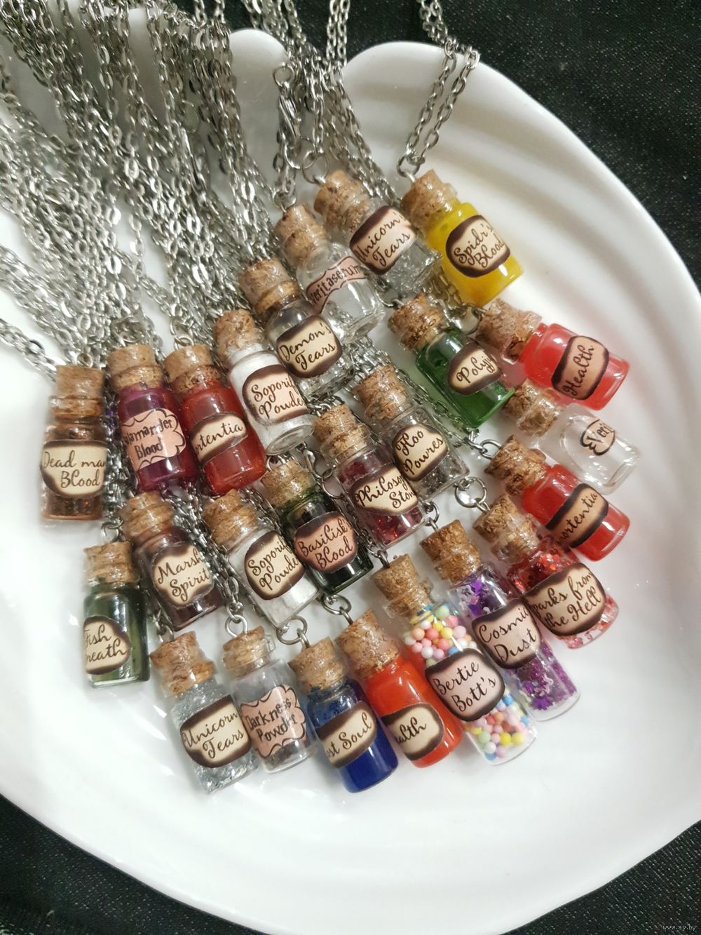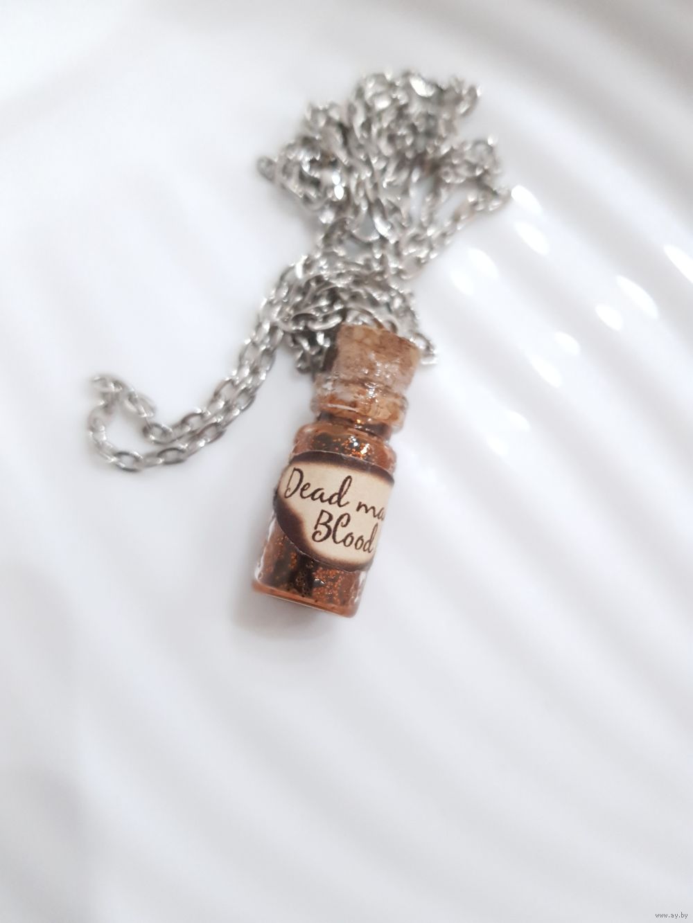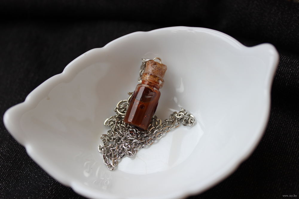 Кулон на стальной цепочке (не ржавеет, не темнеет). Стекло, волшебная жидкость, плотно запаян, не течет, невозможно открыть.