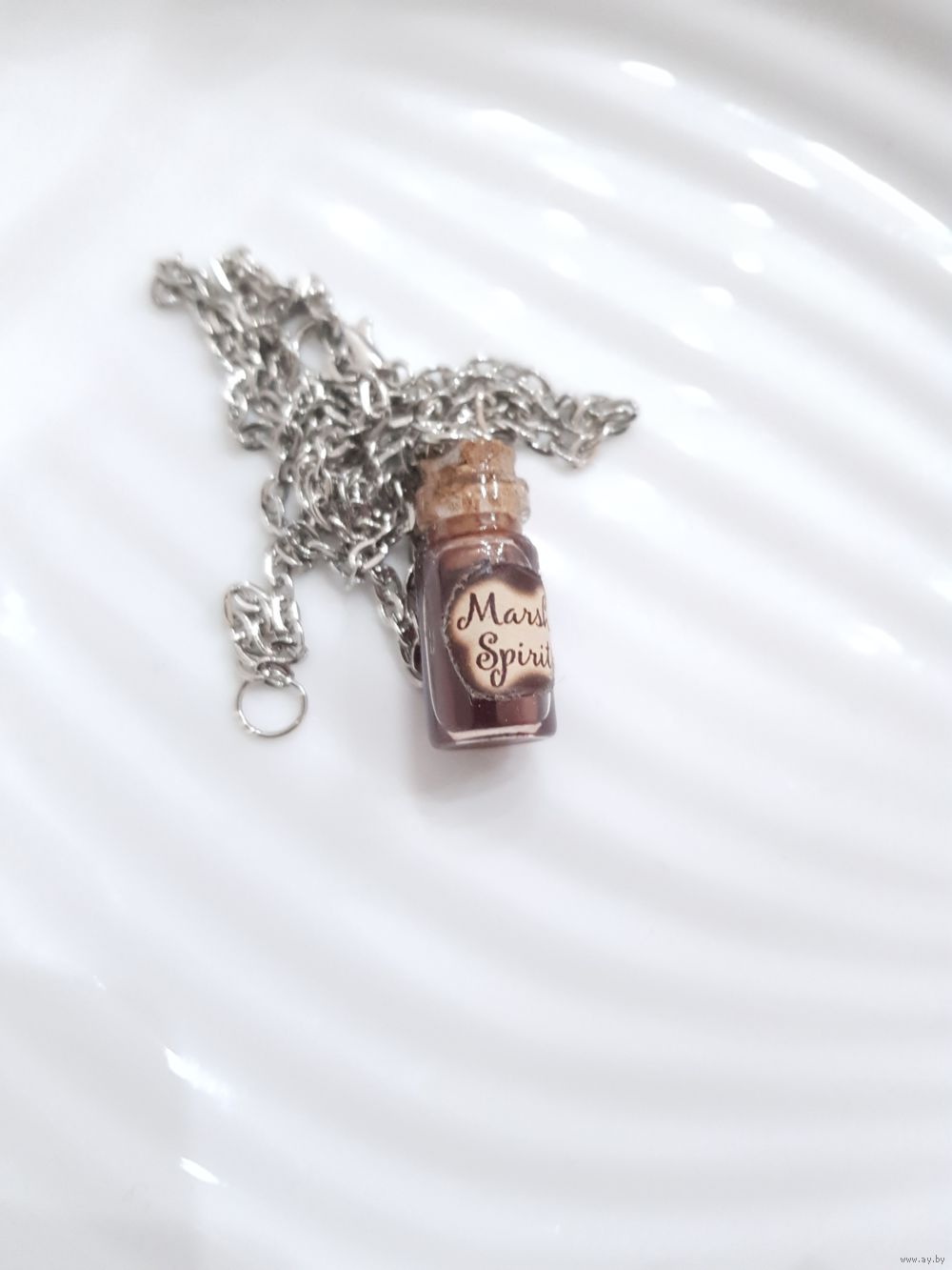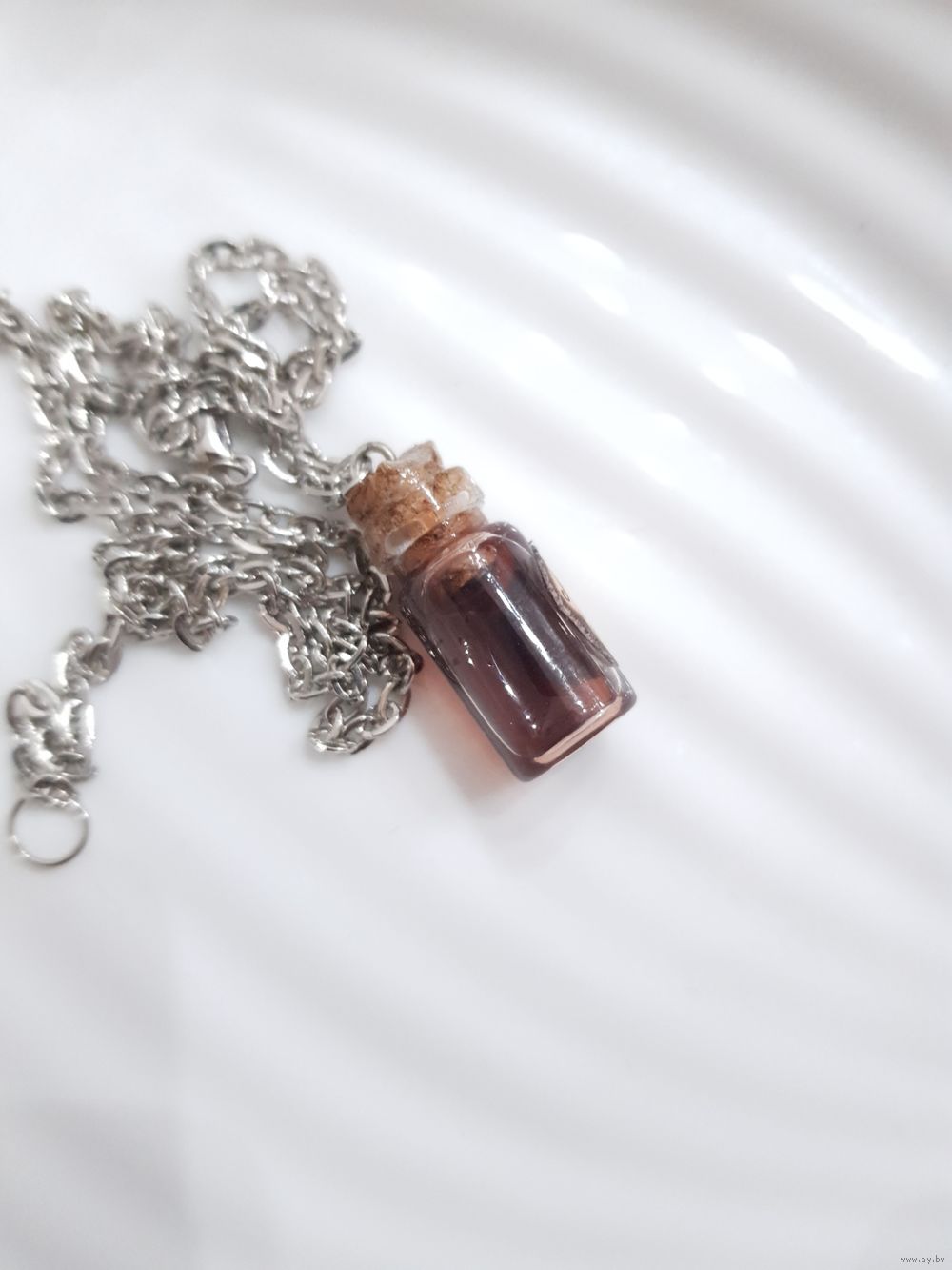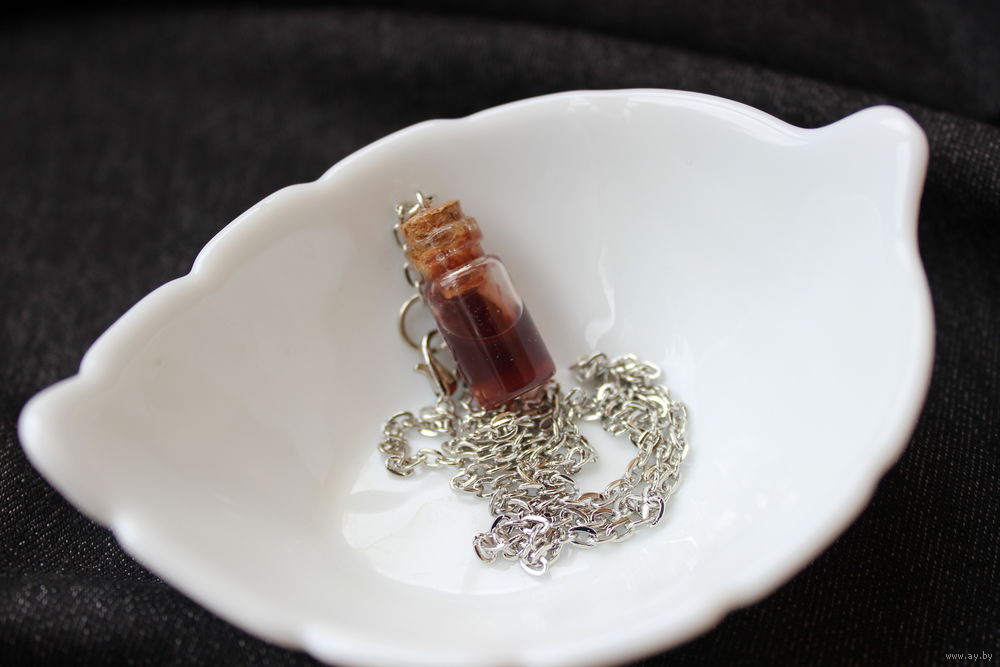 Кулон на стальной цепочке (не ржавеет, не темнеет). Стекло, волшебная жидкость, плотно запаян, не течет, невозможно открыть.