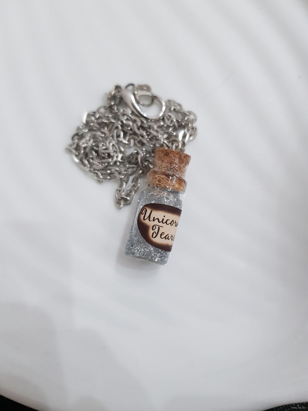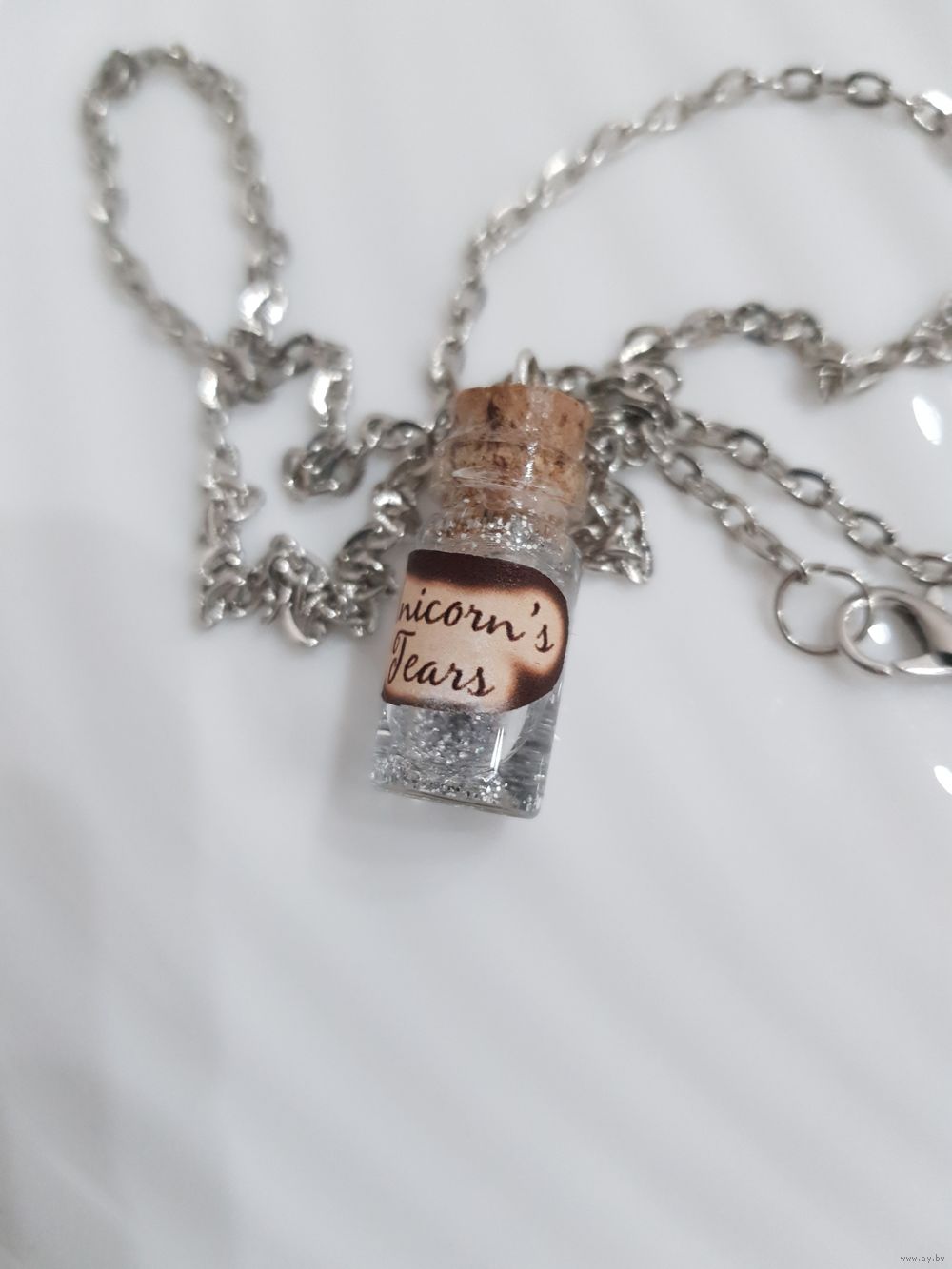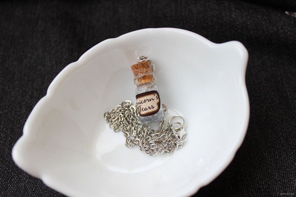 Кулон на стальной цепочке (не ржавеет, не темнеет). Стекло, волшебная жидкость, плотно запаян, не течет, невозможно открыть.