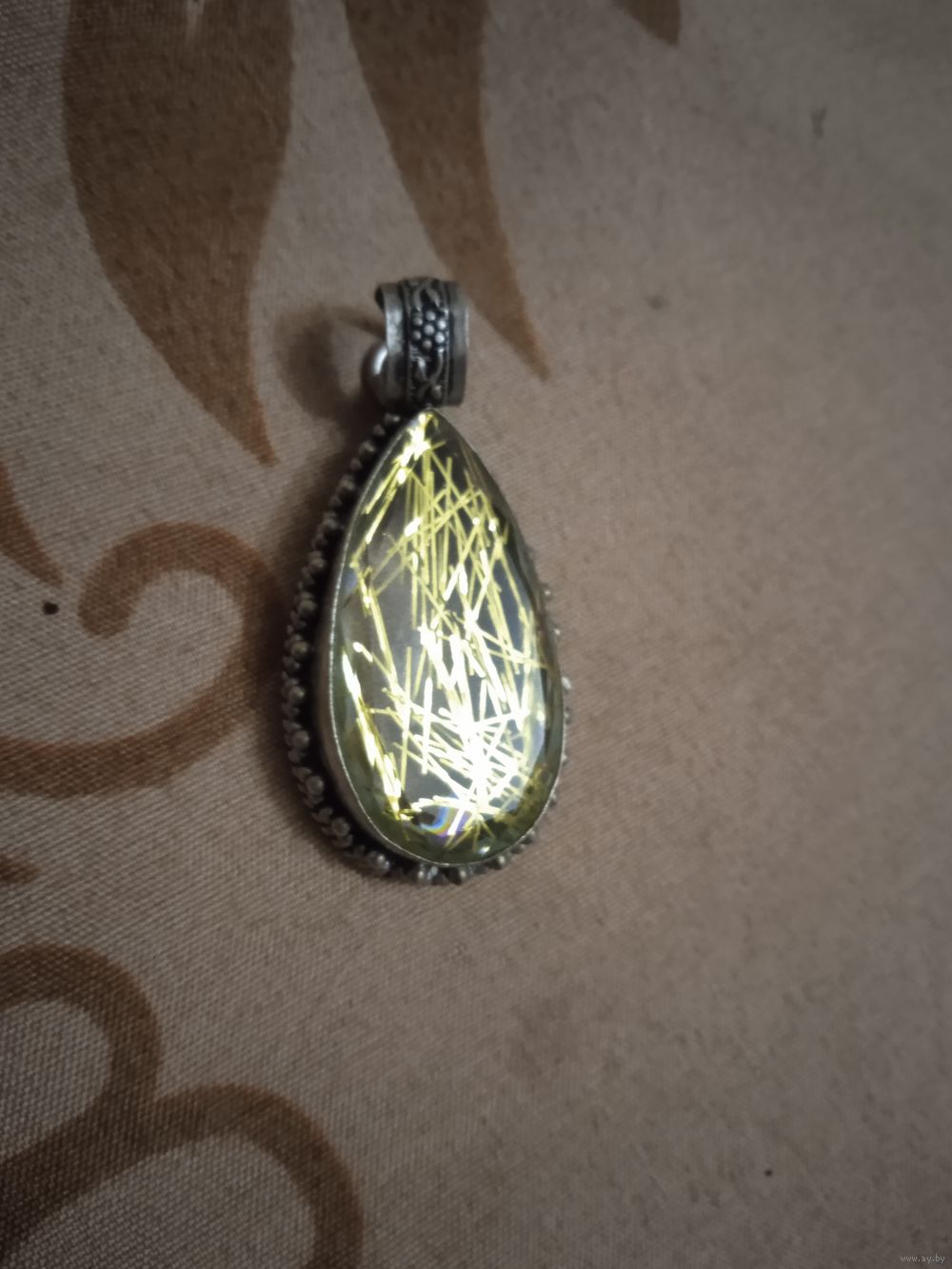 Кулон с красивой вставкой. Размер на фото. Индия. Внутри вставки золотистые палочки. Очень ярко блестит на солнце.