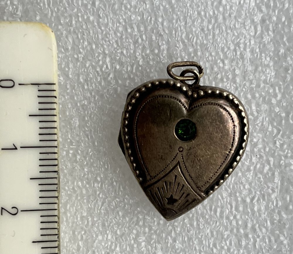 Кулон Сердечко. Голова 875. Камушек зеленый.