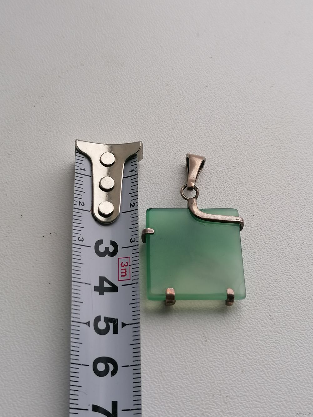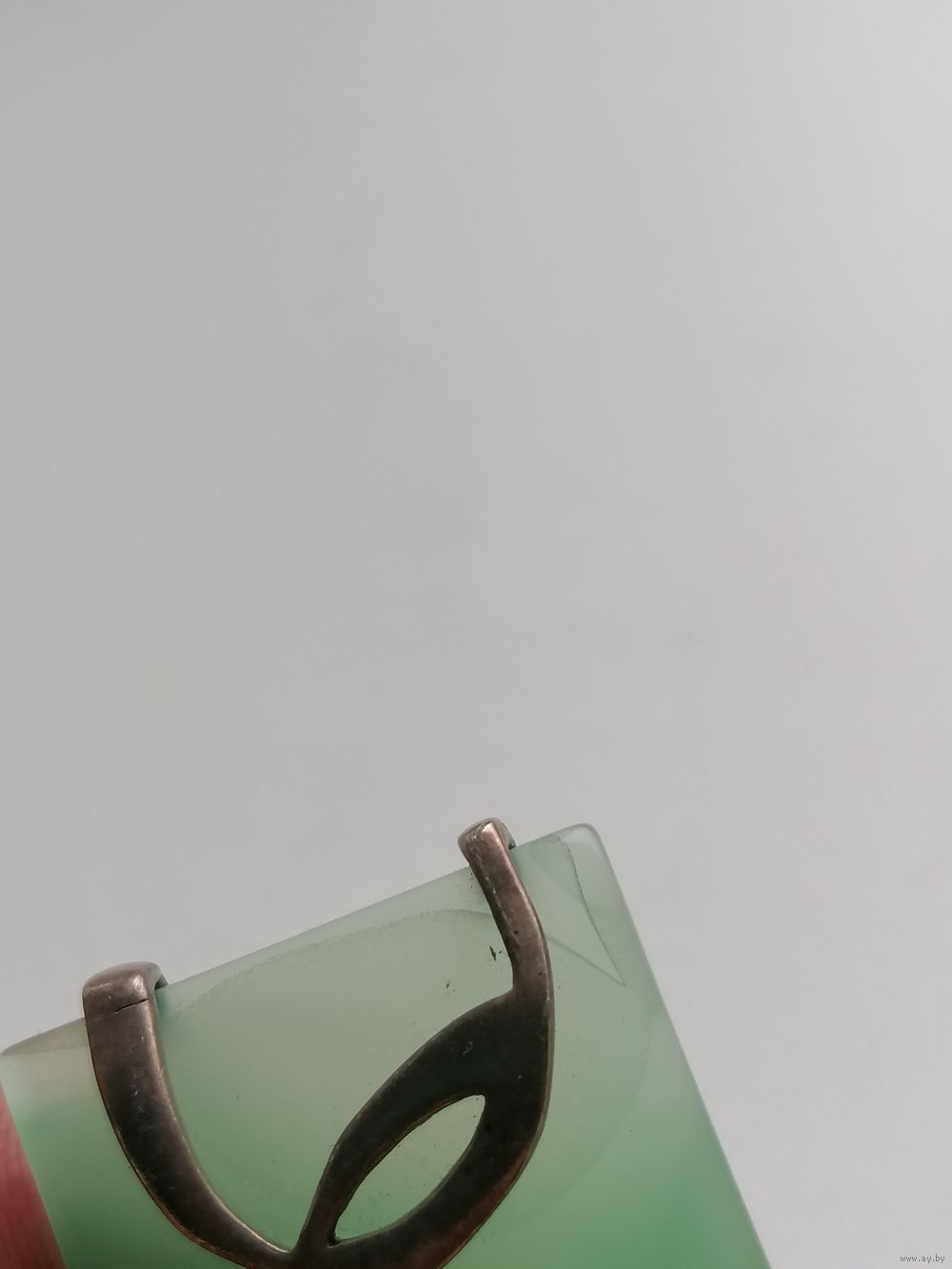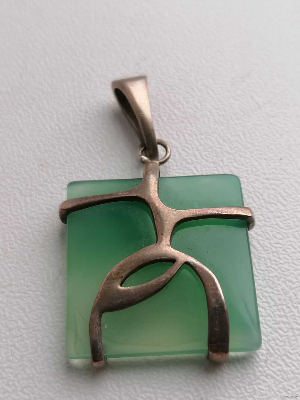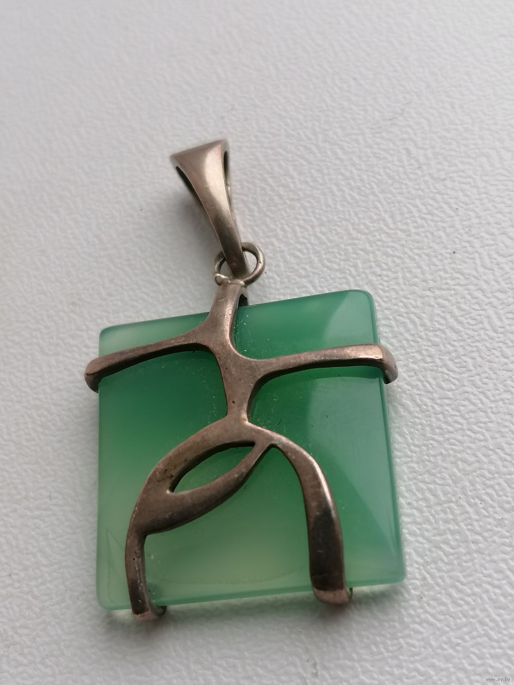 Металл - серебро. Камень. Точное название камня не знаю. На одном из углов есть как-буд-то внутренняя трещина - на мой взгляд это структура камня. Но считаю нужным это указать, на фото показал