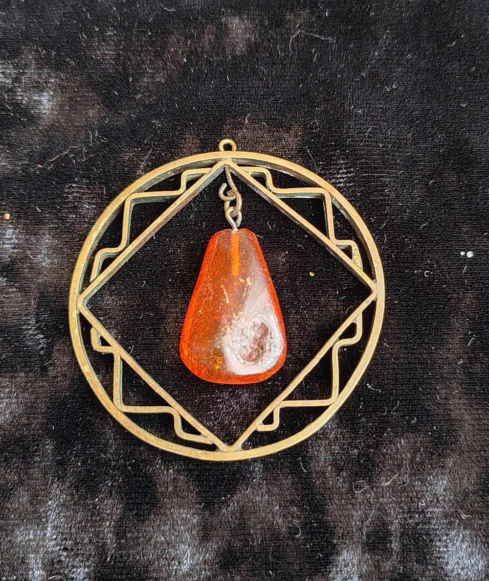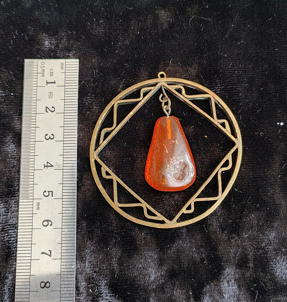 Кулон СССР бронза с подвеской из Балтийского янтаря
