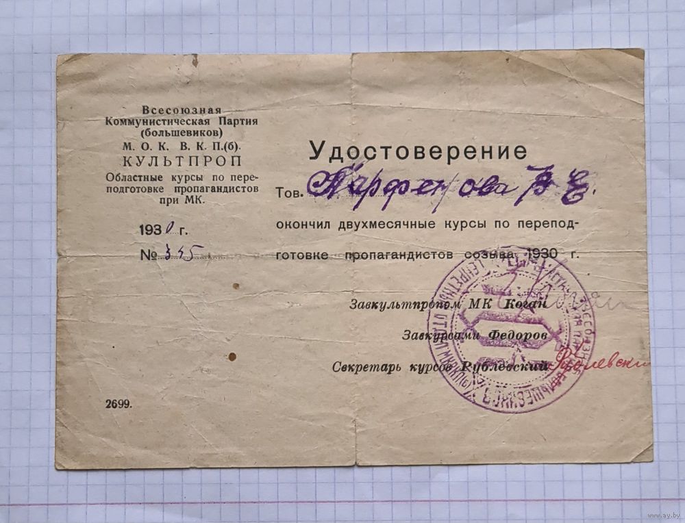 КУЛЬТПРОМ. 1930 год.