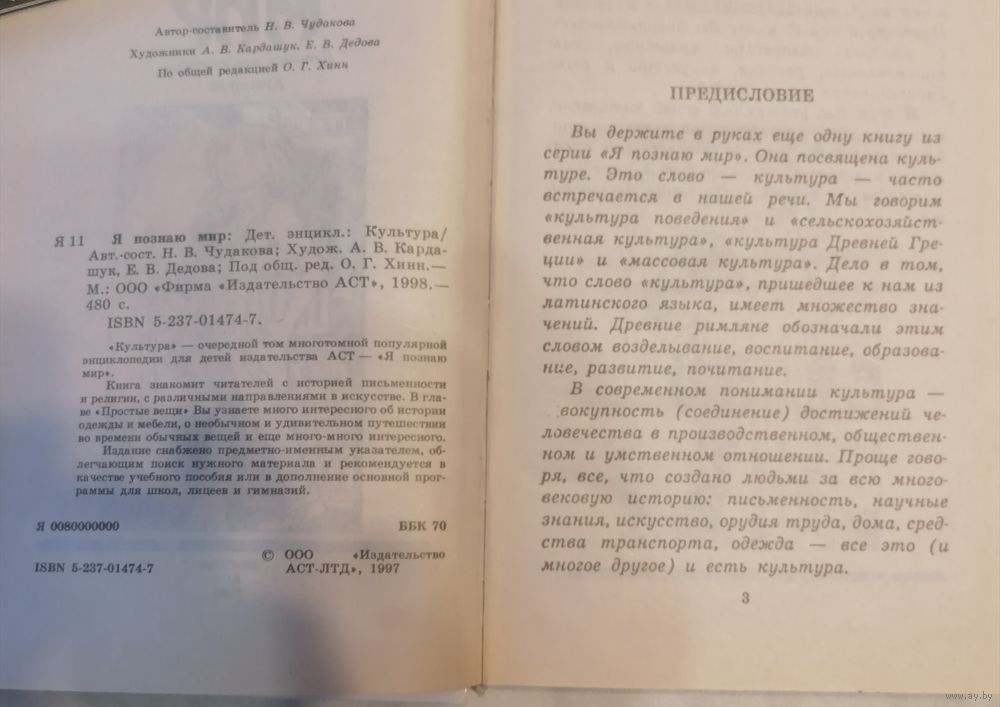 "Культура" - очередной том многотомной популярной энциклопедии для детей издательства ACT - "Я познаю мир".