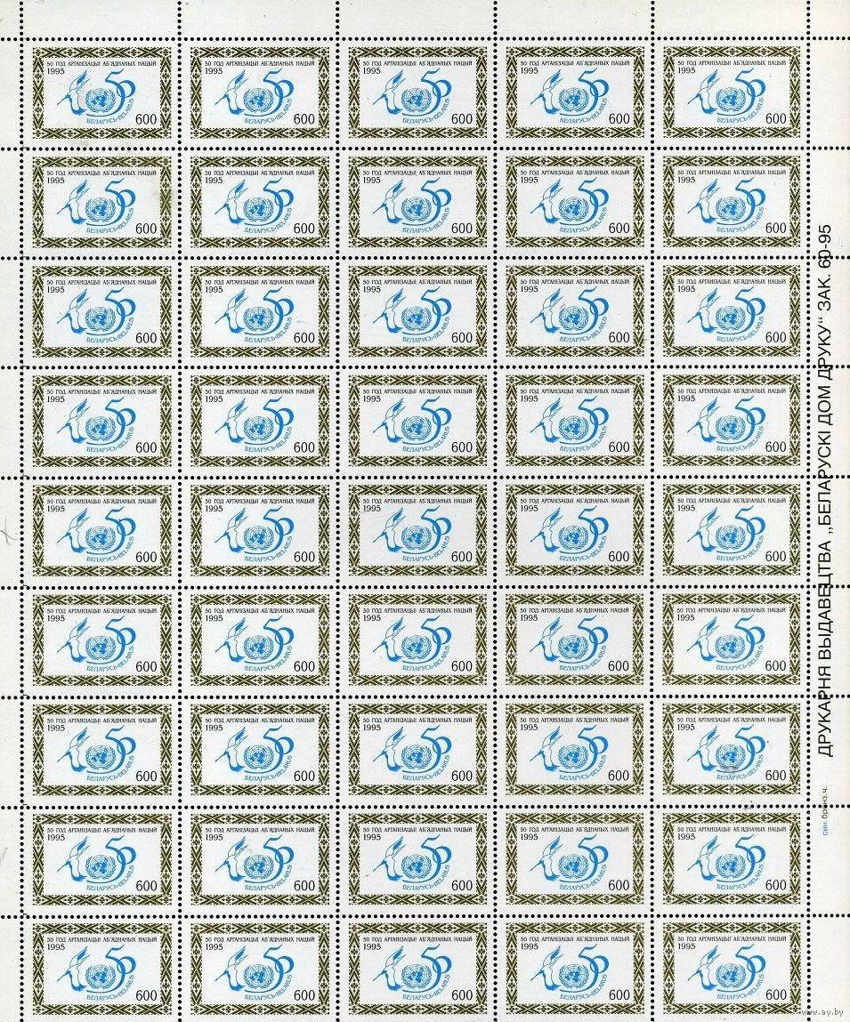 Куплю Беларусь, 50 лет ООН, лист, 1995 MNH