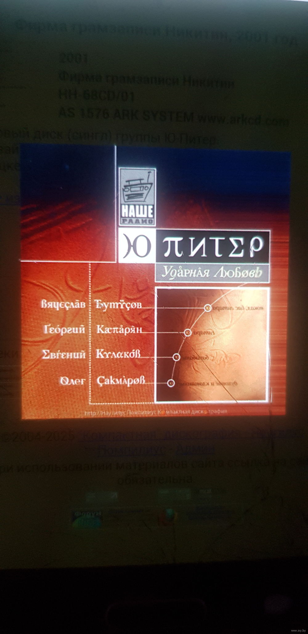 Куплю только в Минске наррямую дешевле недорого Диск "Ю-Питер-Ударная Любовь (Сингл)" Номер диска: HH-68CD/01, Матрица: AS 1576 ARK SYSTEM www.arkcd.com, Лейбл: Фирма Гранзаписи Никитин, 2001 год состав песен: Ударная Любовь, Кони Йото, Real Name. Состав группы: Вячеслав Бутусов-Вокал/Бас-Гитара, Георгий Каспарян-Гитара, Евгений Кулаков-Ударные и Олег Сакмаров-Духовые/Клавишные. ОПЛАТА ПОЧТОЙ КАТЕГОРИЧЕСКИ МНЕ НЕ ПРЕДЛАГАТЬ В ВИДЕ ОТСУТСТВИИ ПЛАТЕОЙ КАРТЫ. Условий оплаты только наличные и самовывоз ТОЛЬКО С МИНЧАНИНОМ СВЯЗЫВАЮСЬ в любые договорные дни в Минске. ВСТРЕЧИ С ПООДАВЦОМ И ЛИЧНАЯ ПЕРЕДАЧА ИЗ РУК В РУКИ ЧЕРЕЗ ЗНАКОМЫХ ПРОДАВЦОВ ИЗ ДРУГОГО ГОРОДА, СЕЛА И ДЕРЕВНИ С РАЗНОГО РАЙОНА И ОБЛАСТИ НЕ ПРАКТИКУЕТСЯ (с 11:00 до 20:00 часов). Обязательно в крайнем случай звоните возможно буду отсутствовать дома мой телефон указан слева в "Контактном Данном" (с 10:00 до 21:00 часов). ПОСЛЕ МОЕГО НАЖАТИЯ ПОКУПКИ ЛОТА ПИШИТЕ ПОЖАЛУЙСТА НА ЭЛЕКТРОННЫЙ АДРЕС ВИБЕРОМ И ДРУГИМИ СЕТЯМИ НЕ ПОЛЬЗУЮСЬ В КОММЕНТАРИЯХ ОСТАВЛЯТЬ НЕЛЬЗЯ!!