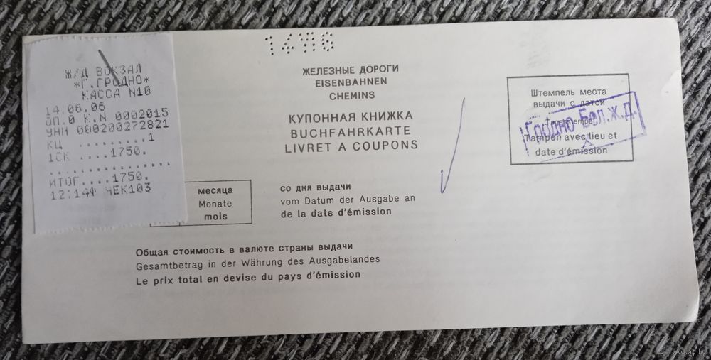 Купонная книжка на многократный проезд. Гродно-Кузница. 2006 г.
