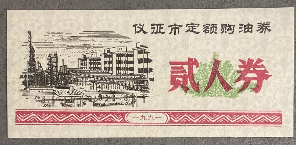Купоны на покупку нефти на фиксированную сумму в городе Ичжэн 1991 год. С рубля без МЦ.