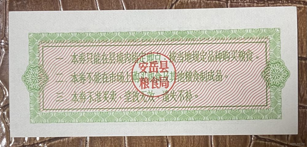 Купоны на покупку зерна в округе Анью 1980 год. Китай. С рубля без МЦ.