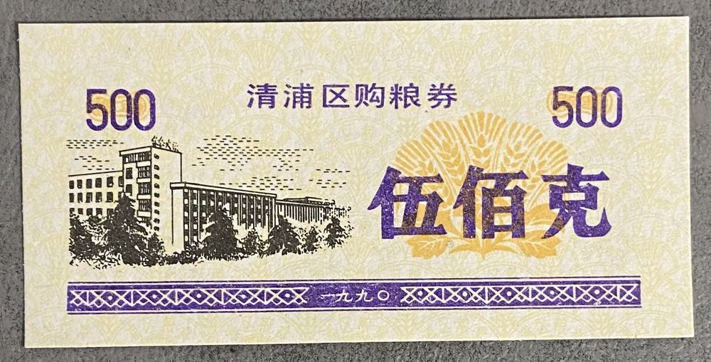 Купоны на закупку зерна в районе Цинпу 1990 год. С рубля без МЦ.