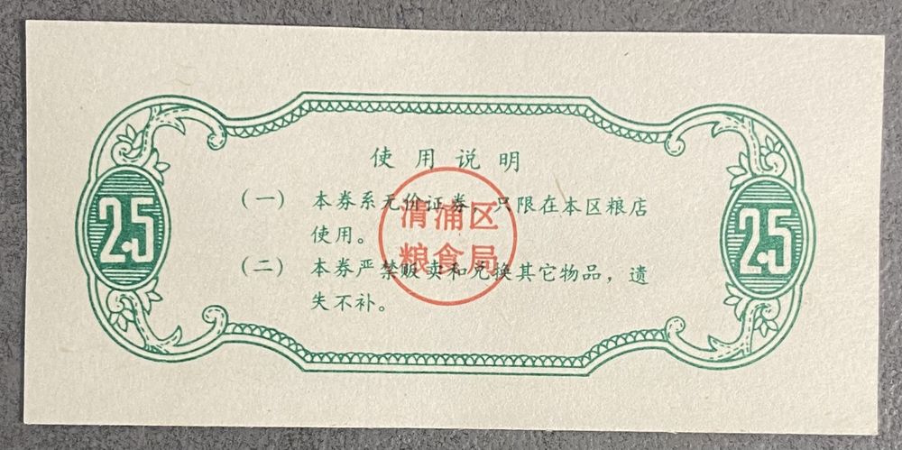 Купоны на закупку зерна в районе Цинпу 1990 год. С рубля без МЦ.