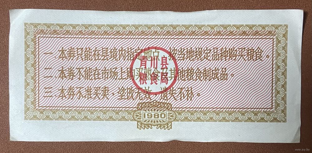 Купоны на закупку зерна в уезде Цинчуань 1980 год. Китай. С рубля без МЦ.