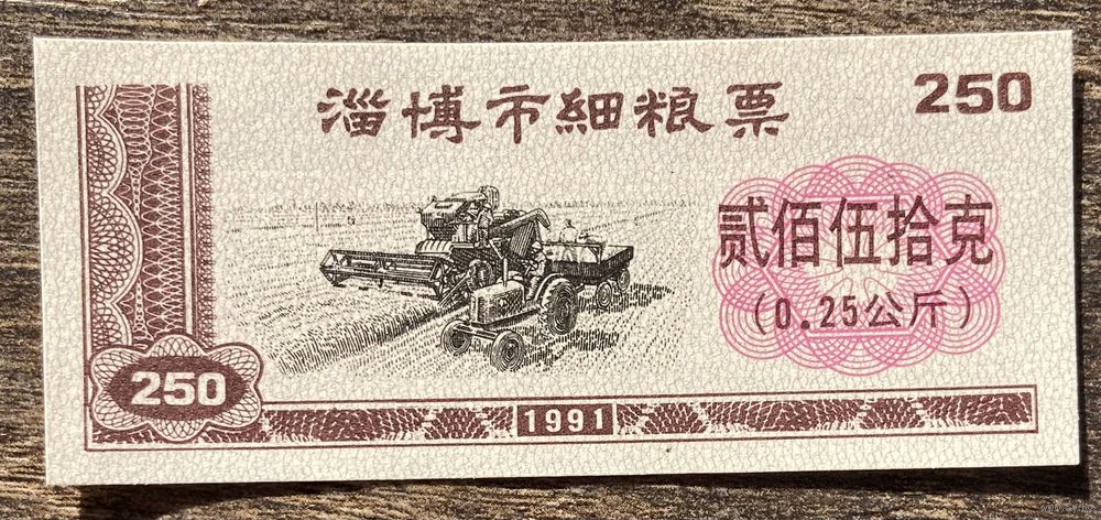 Купоны на зерновые из города Цзибо 1991 год. Китай. С рубля без МЦ.