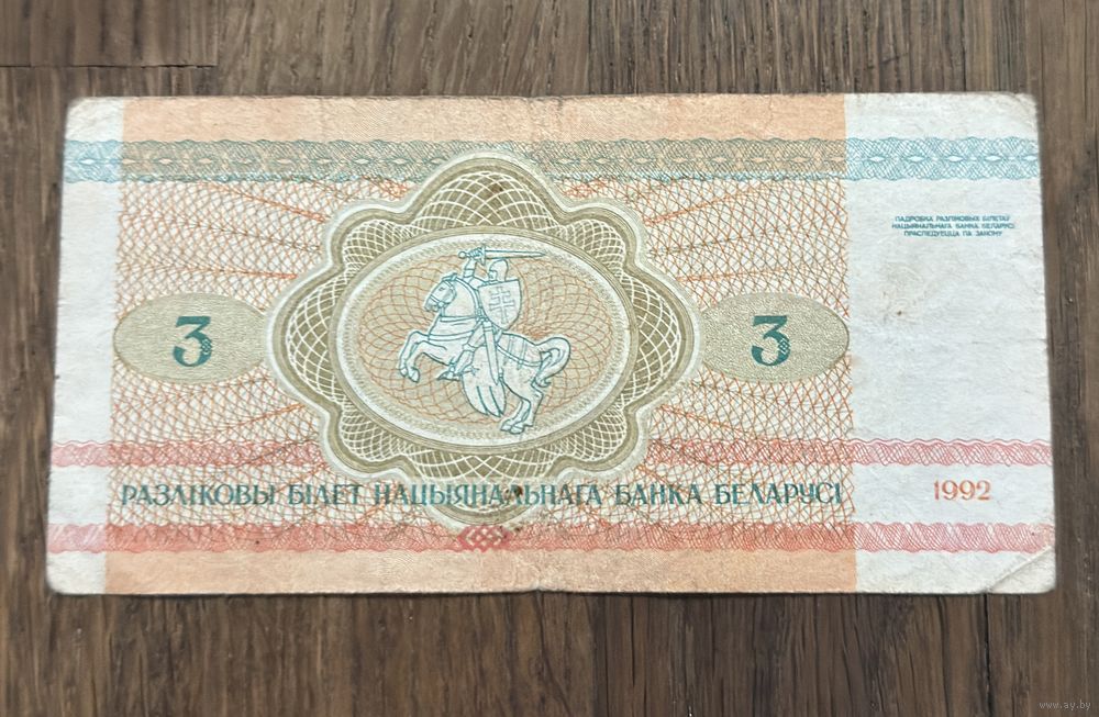 Купюра 3 Рубля Белорусский 1992г.