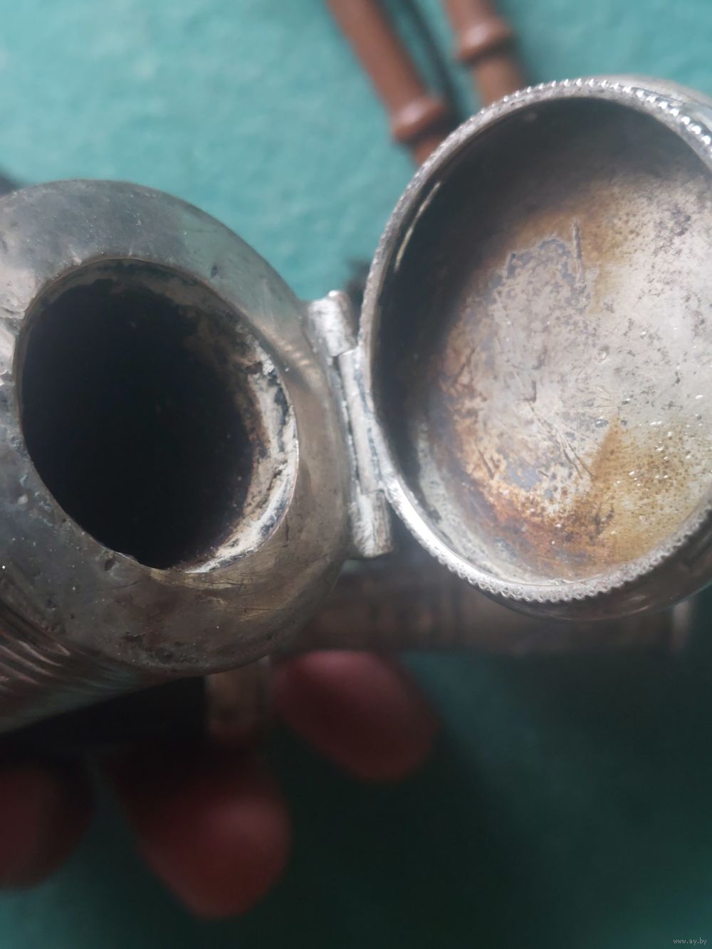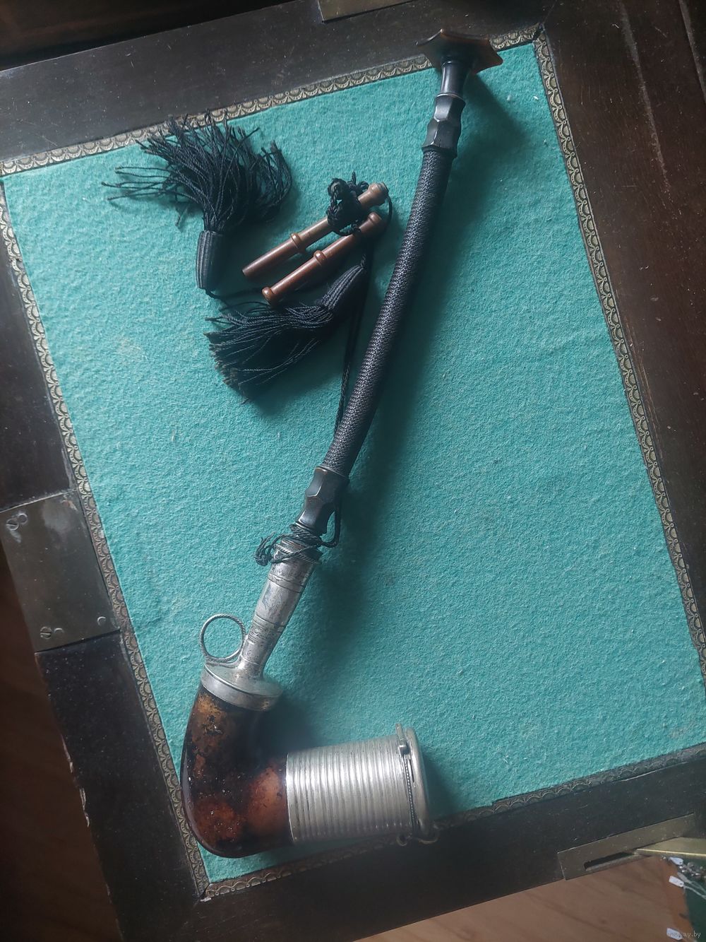 То что видите металлические части- серебро. Вопросы- сколько весит и т.д - продаю трубку. Кому нужен лом- покупаем разбираем(думаю ломаем).не Русская.