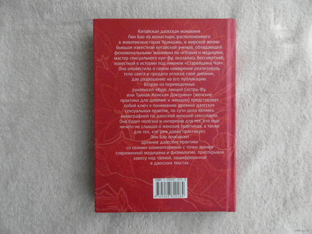 Вторая из переведенных рукописей «Курс лекций Сестры Фу, или Тайная Женская Доктрина» (практики для девочек и женщин) представляет собой ключ к пониманию древних даосских сексуальных практик, по сути дела являясь монографией по даосской женской сексологии. Она будет полезна и интересна для тех, кто еще ничего не слышал о женских практиках, а также для тех, кто уже давно практикует. Лин Бао описывает древние даосские практики со своими комментариями с точки зрения современной медицины и физиологии, приоткрывая завесу над тайной, зашифрованной в даосских текстах.