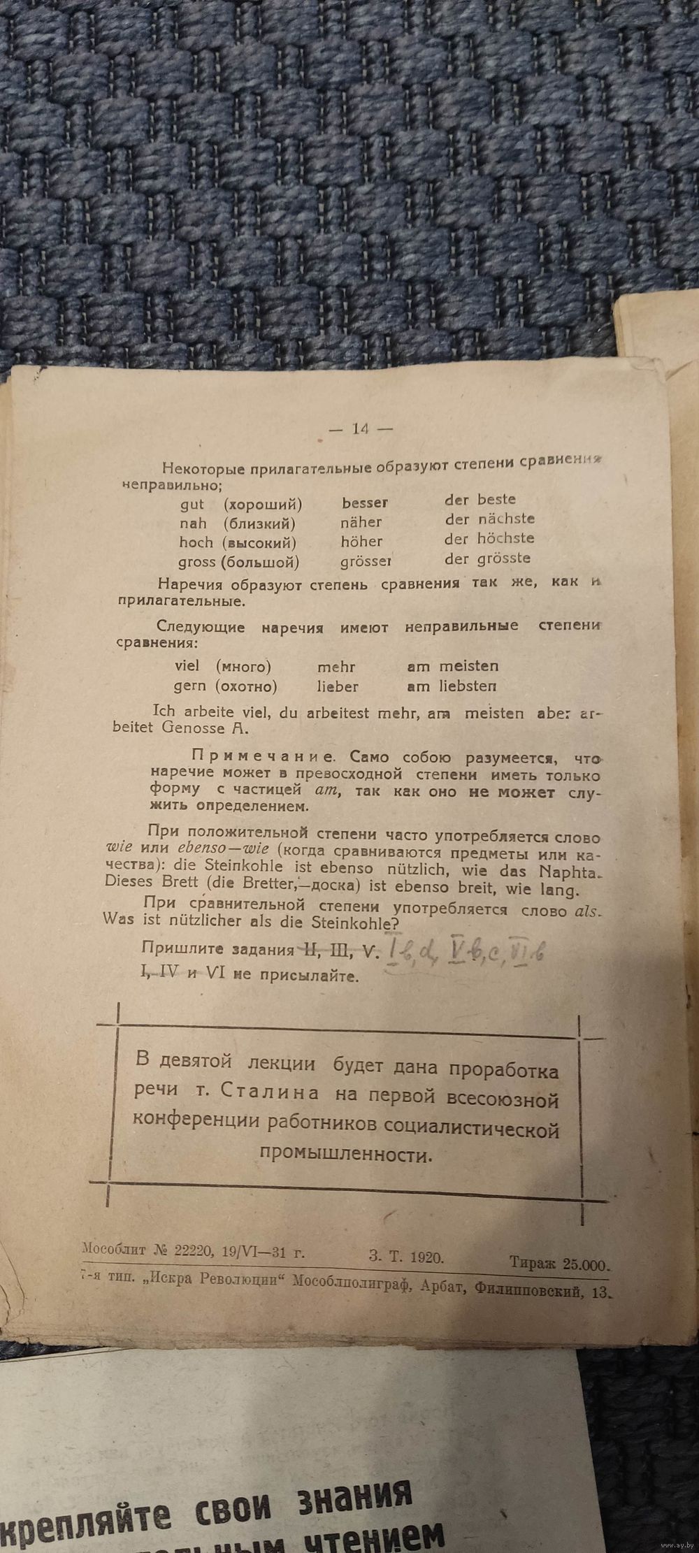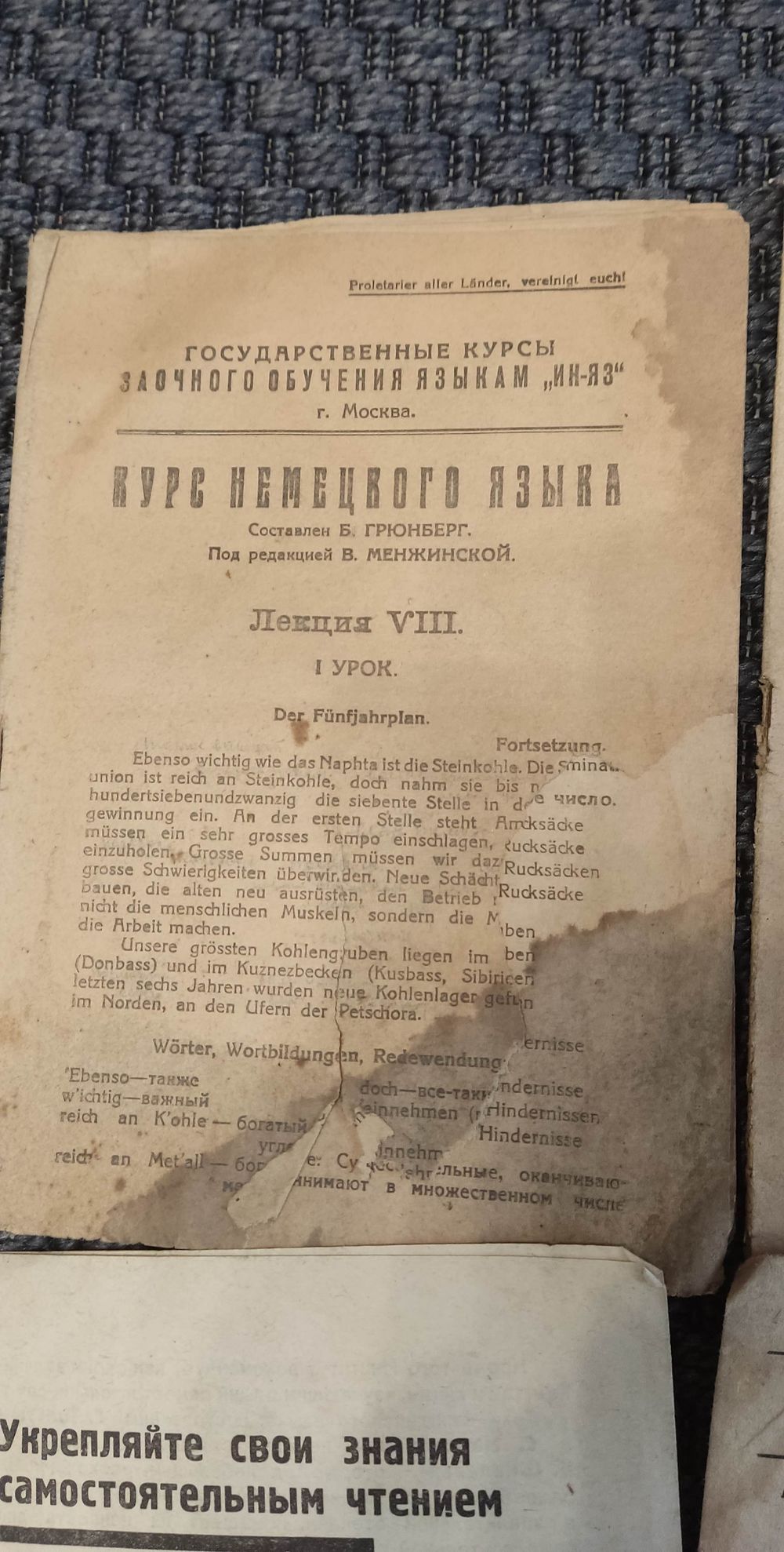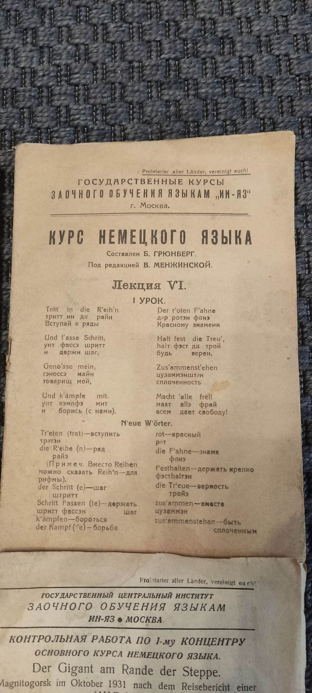 Курс немецкого языка для " ИН-ЯЗ" 1931 год.