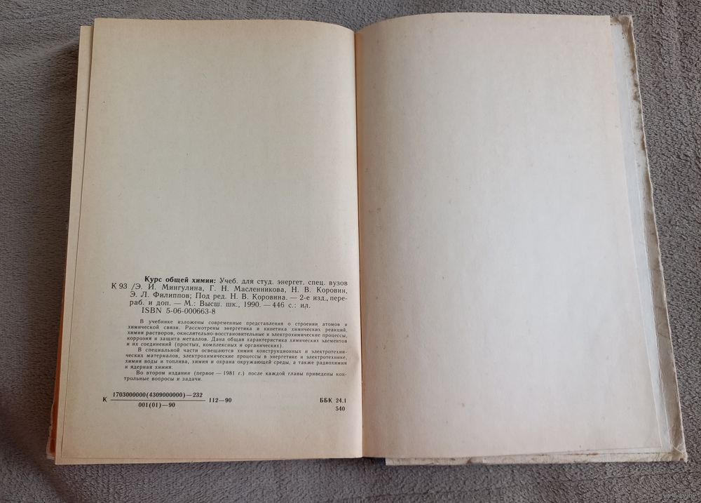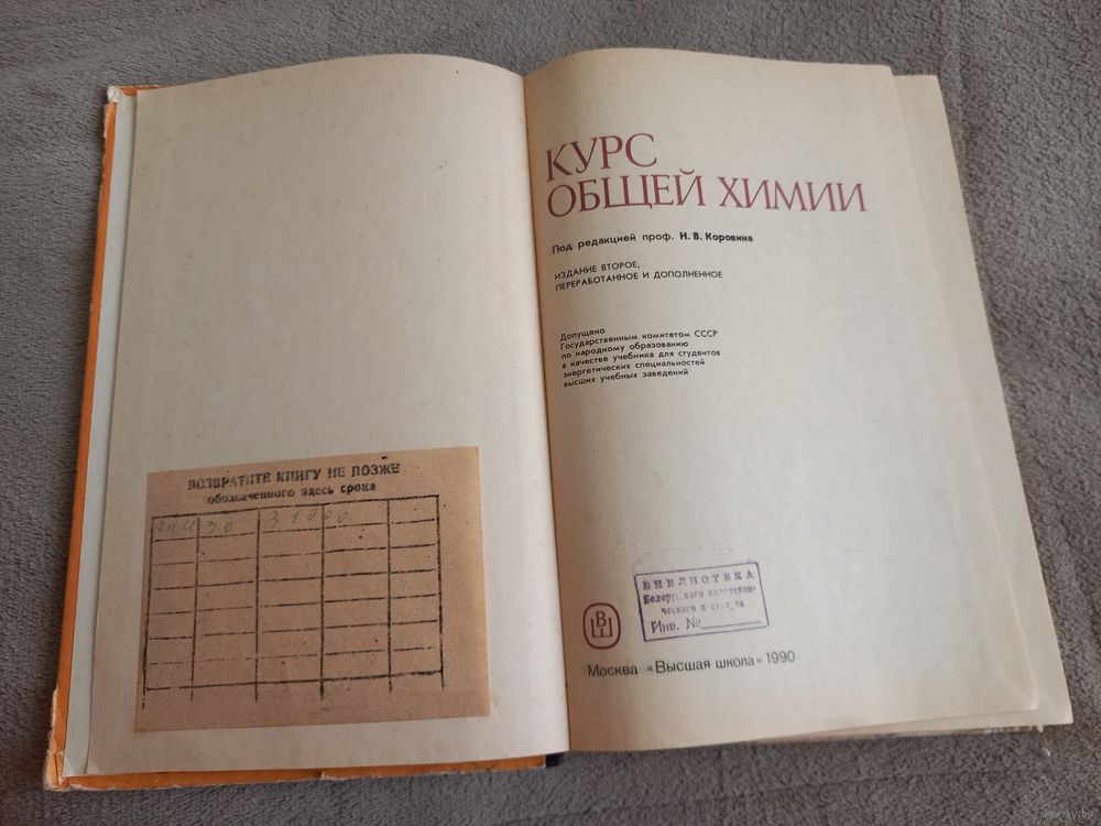 "Курс общей химии", Коровин Н. В., Мингулина Э. И., Масленникова Г. Э., 1990 год, учебник по химии для инженерно-технических вузов. Москва "Высшая школа".