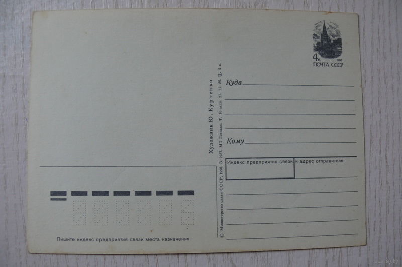 Куртенко Ю., С Новым годом! 1989, 1990, чистая, ДМПК (птицы, синица).