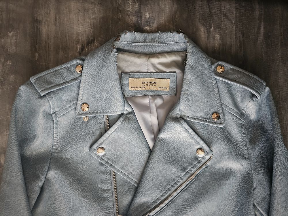 Куртка (косуха) женская, цвет голубой, размер 42 (S), материал кожзам (дефекты на 2-ом фото, трещины на воротнике).