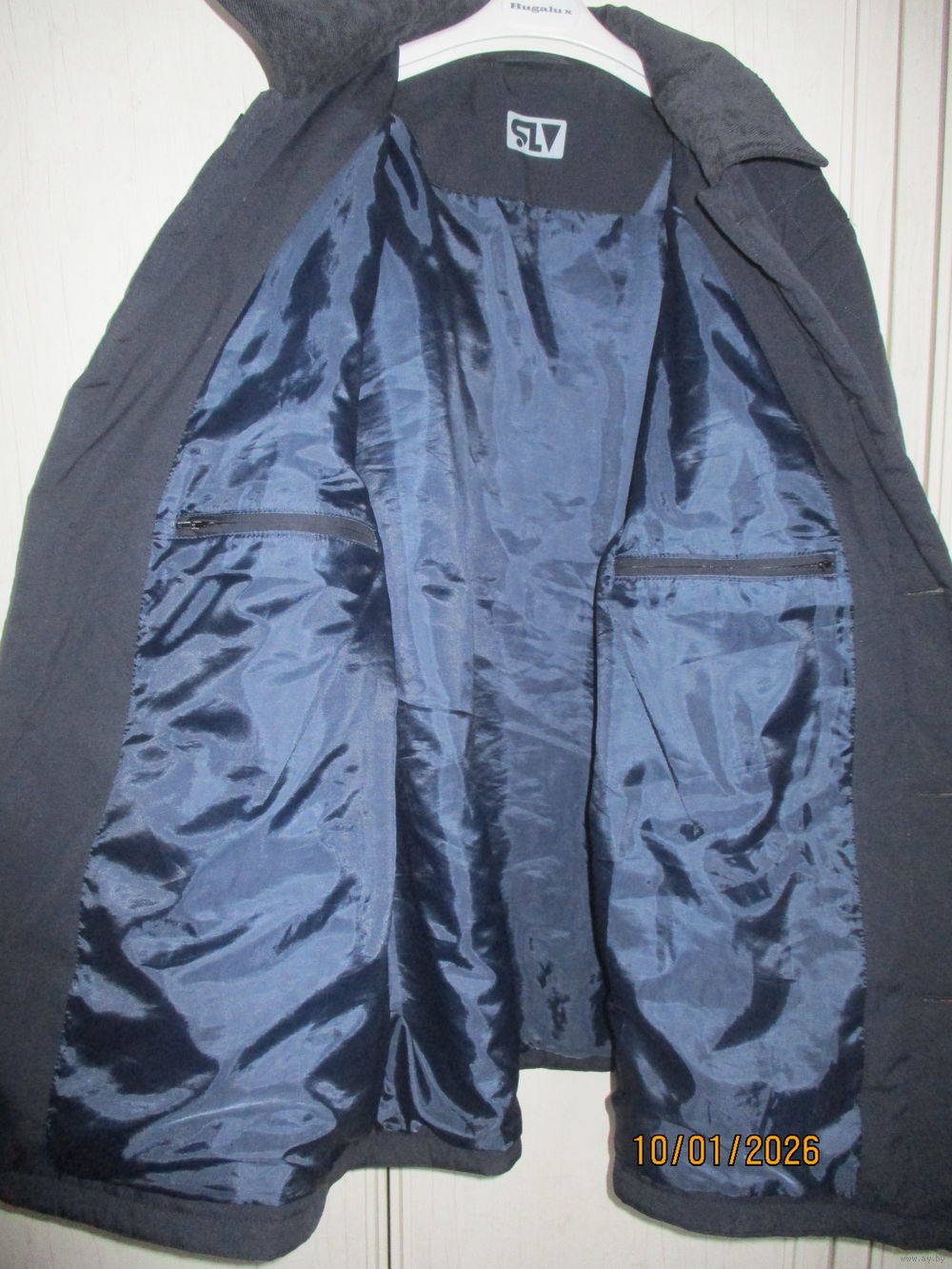 Темно-синяя. 2 наружных,2внутренних кармана. на пуговицах,на синтепоне
