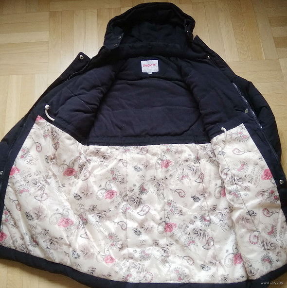Цвет черный. Теплая, не продуваемая , легкая, удобная при носке. На рукавах внутренние трикотажные манжеты, а на капюшоне красивый снимающийся натуральный мех . Супер карманы. Внутри стягивающаяся кулиска. Надежный замок и качество самой куртки. Б/у совсем мало. Продается т.к. не подходит по размеру .