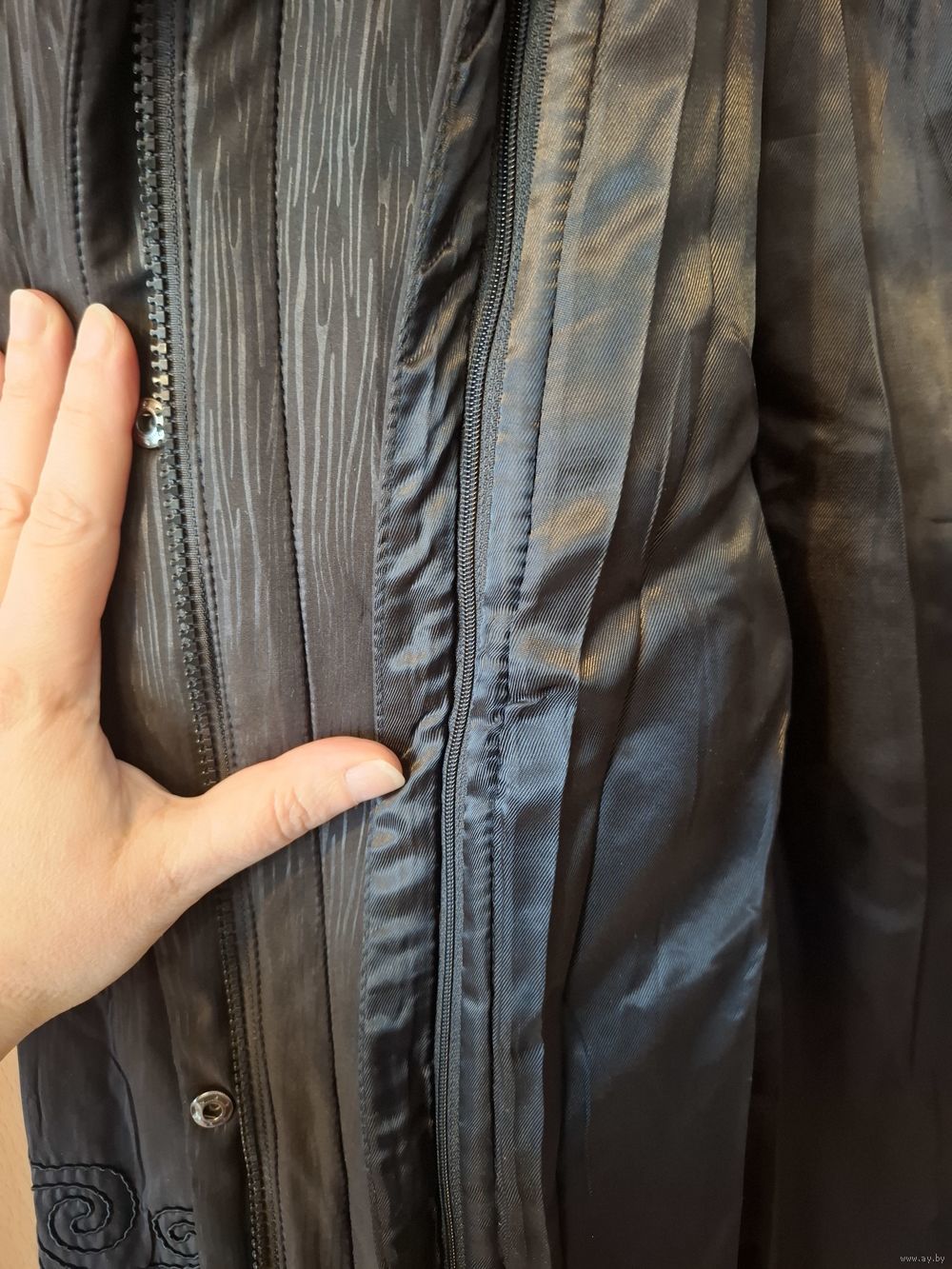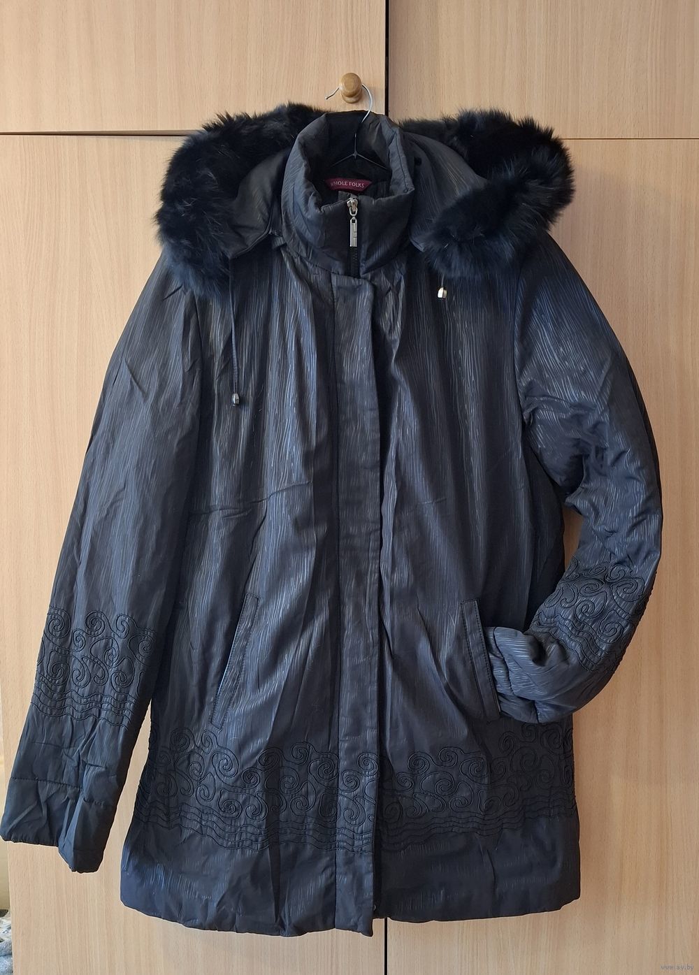 Продается куртка женская 52-54 размер, зима+деми. Двойная. Немного б/у. Отстегивается подкладка, капюшон и опушка ( показано на фото ). Черная с рисунком и вышивкой на рукавах и низу куртки.