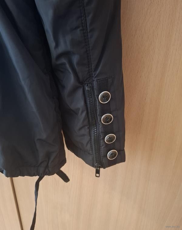 Продаётся итальянская куртка чёрная 46-48-50 размер. С красивым воротником в котором спрятан капюшон. На спине регулировка резинка на кнопках. Внутри, по бокам, регулируется на завязках. Рукав на замочке. Тёплая, лёгкая.